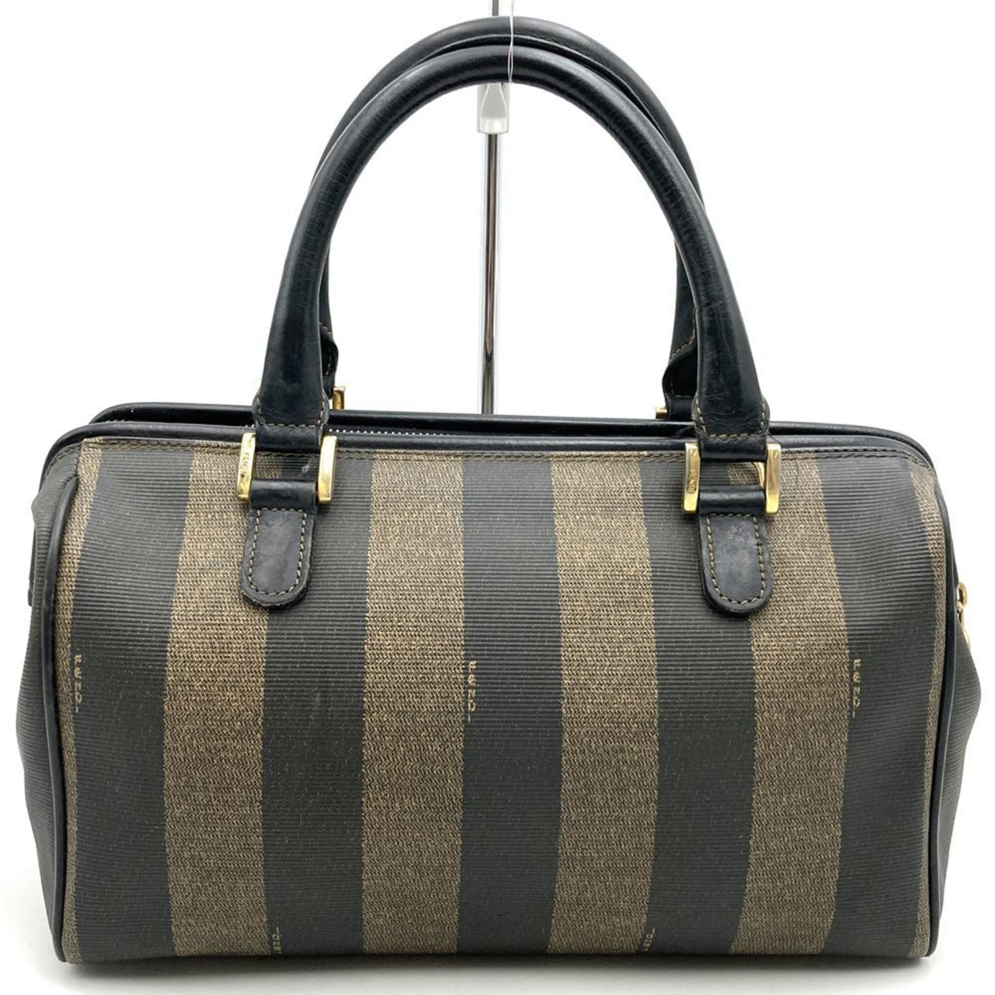 Fendi 259022 Boston Bag Handbag Black Brown Leather