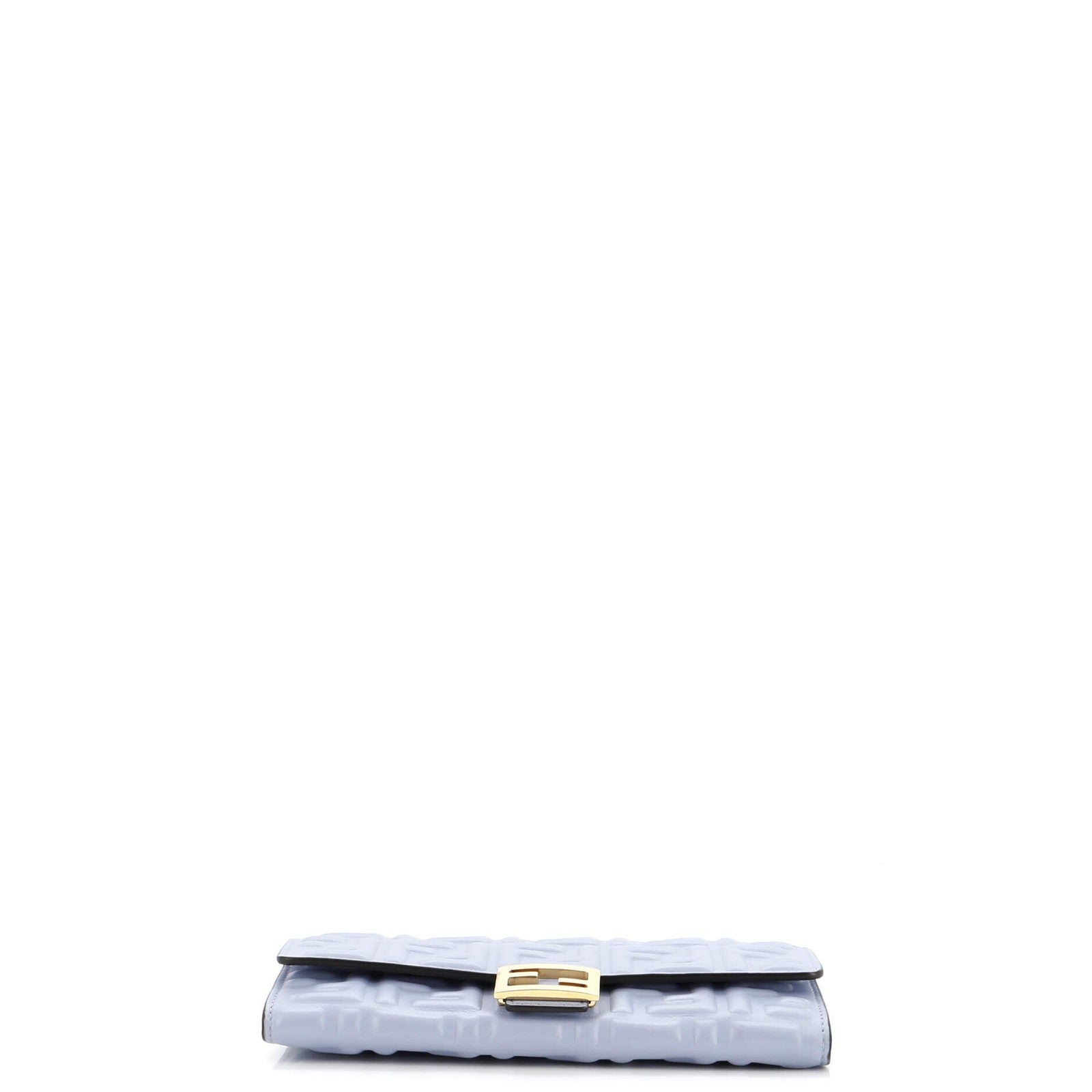 Fendi Baguette Continental Wallet On Chain Zucca Embossed Leather
