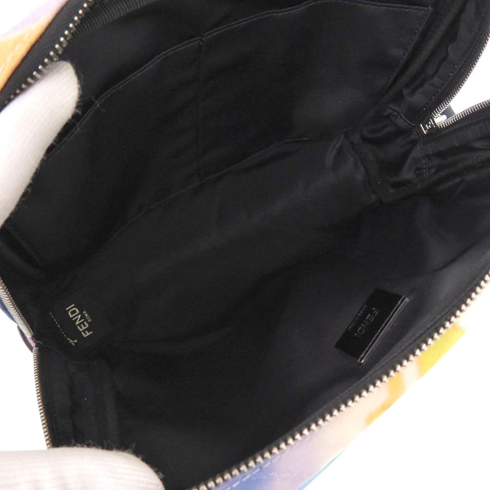 Fendi Business Bag 7N0116 Fabric , Calfskin Light Blue Zucca Pattern Marble Ff Logo Pouch