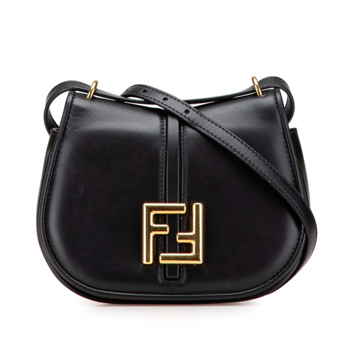 Fendi Camon Small Shoulder Bag 8Bs082 Black Leather
