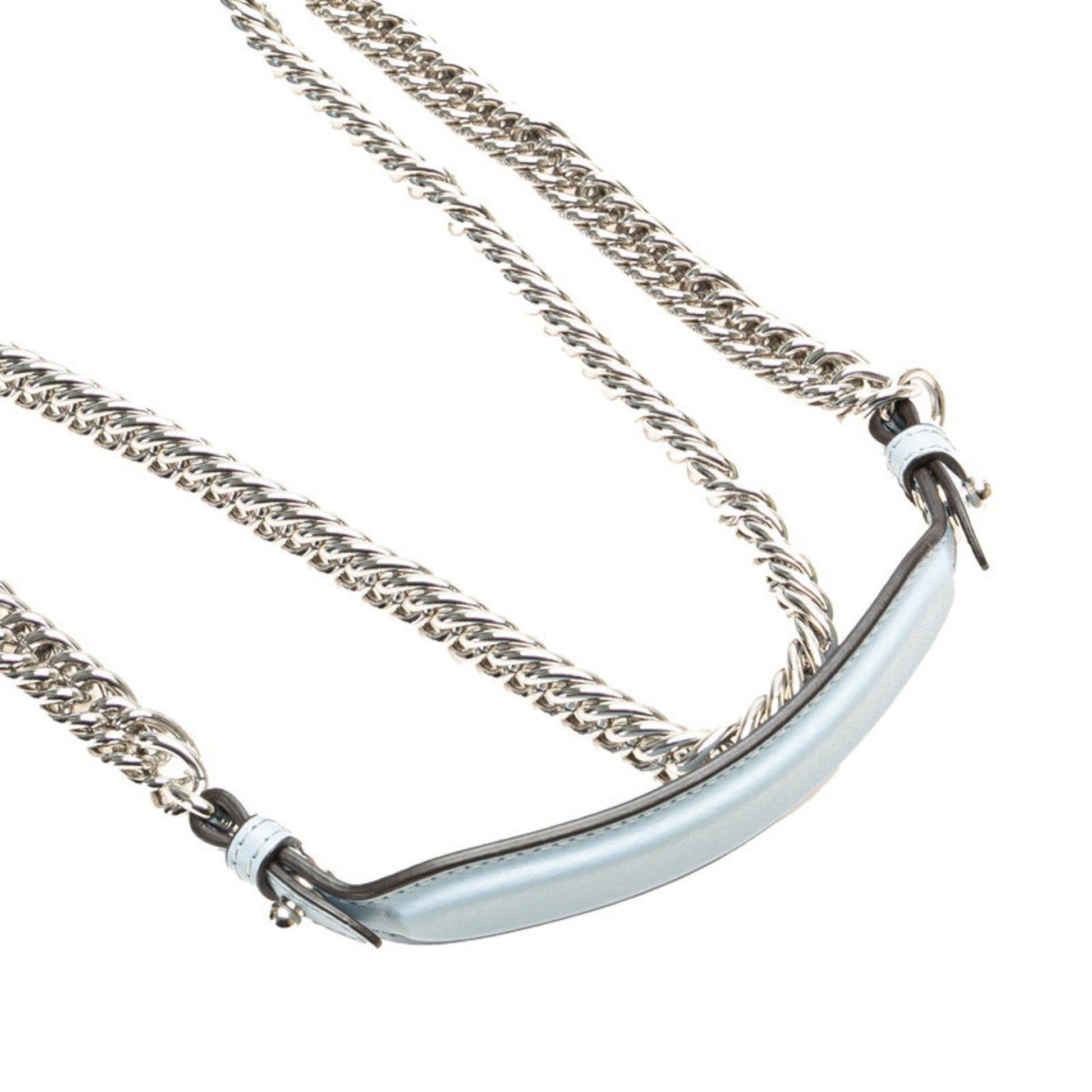 Fendi Canai Mini Ribbon Chain Shoulder Bag Handbag 8Mo381 Light Blue Silver Leather