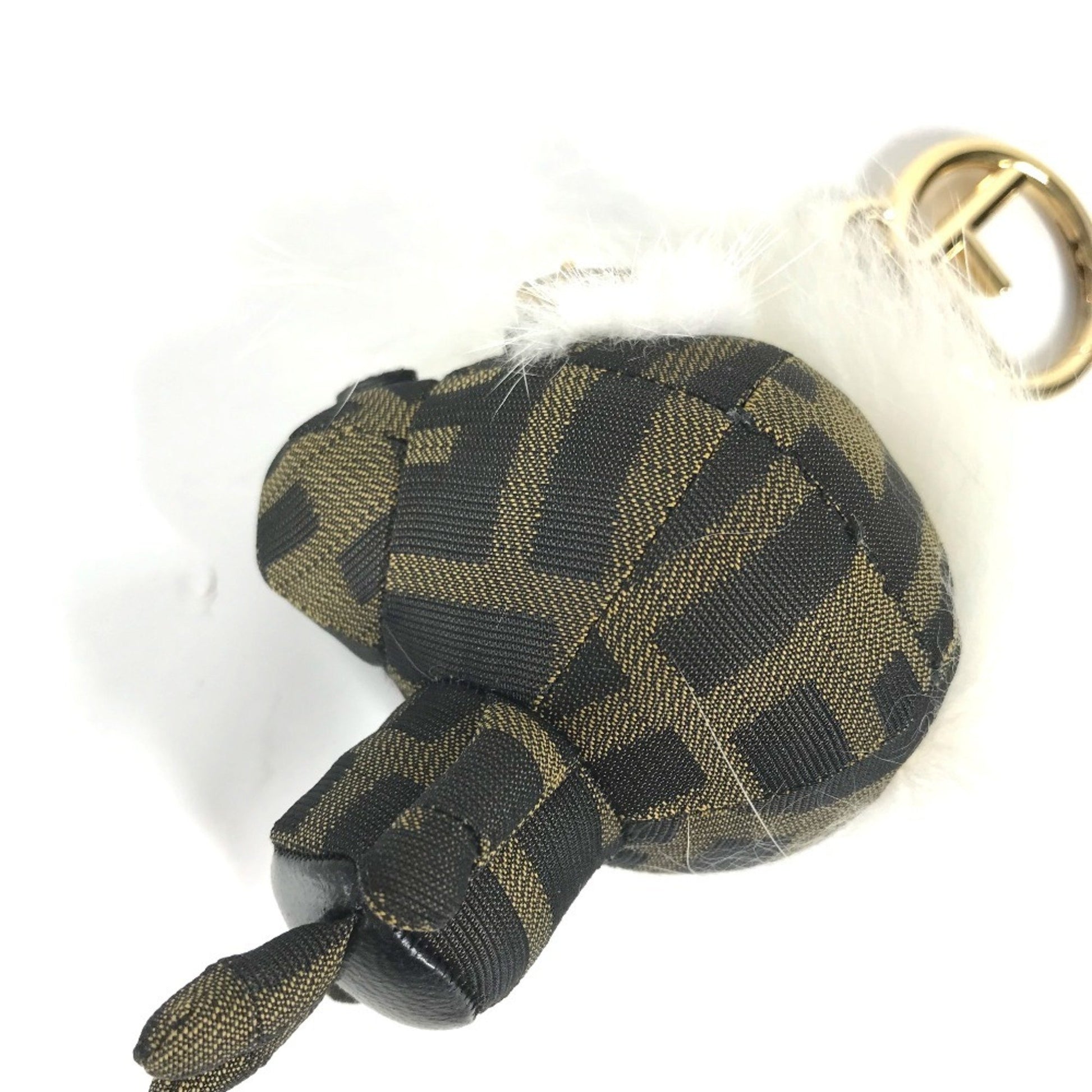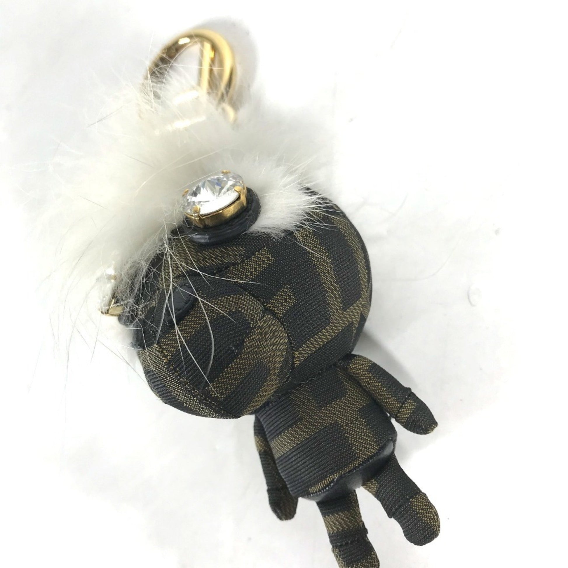 Fendi Fendi Fur Rhinestone Zucca Logo Monster Space Monkey Keychain Bag Charm Canvas