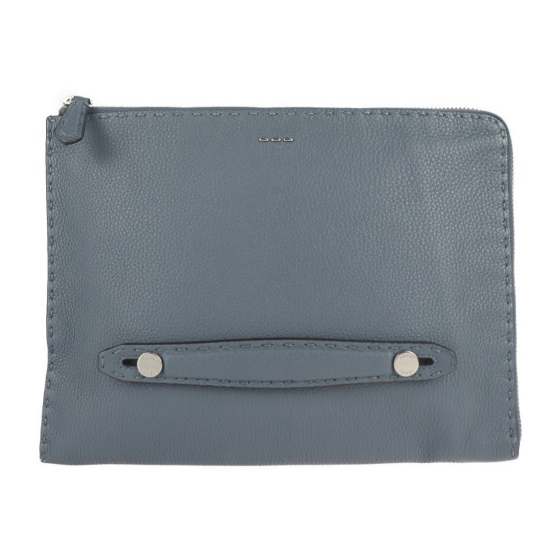 Fendi Fendi Selleria Clutch Bag 7M0225 Leather Blue Gray Second Handbag