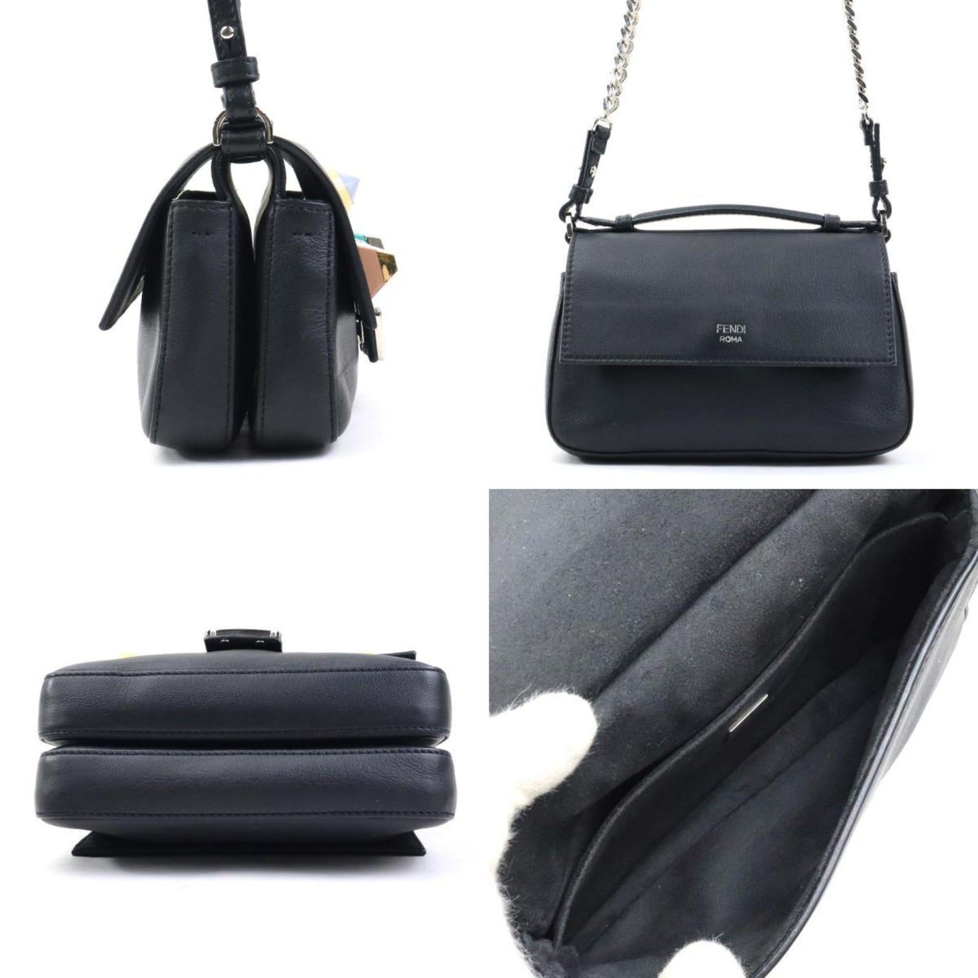 Fendi Handbag Shoulder Bag Double Micro Baguette Leather Black Multicolor Silver
