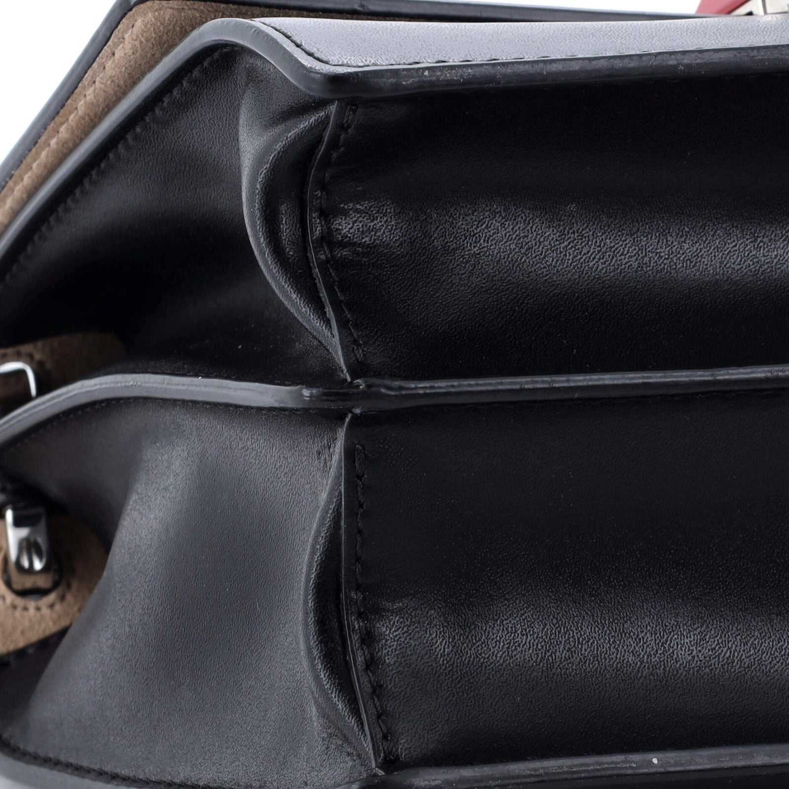Condition: Very good. Minor odor in interior. Wear and minor scuffs on exterior, minor scuffs and small indentations on shoulder pad, minor cracking and glue stains underneath flap corners. Wear and marks in interior, scratches on hardware.