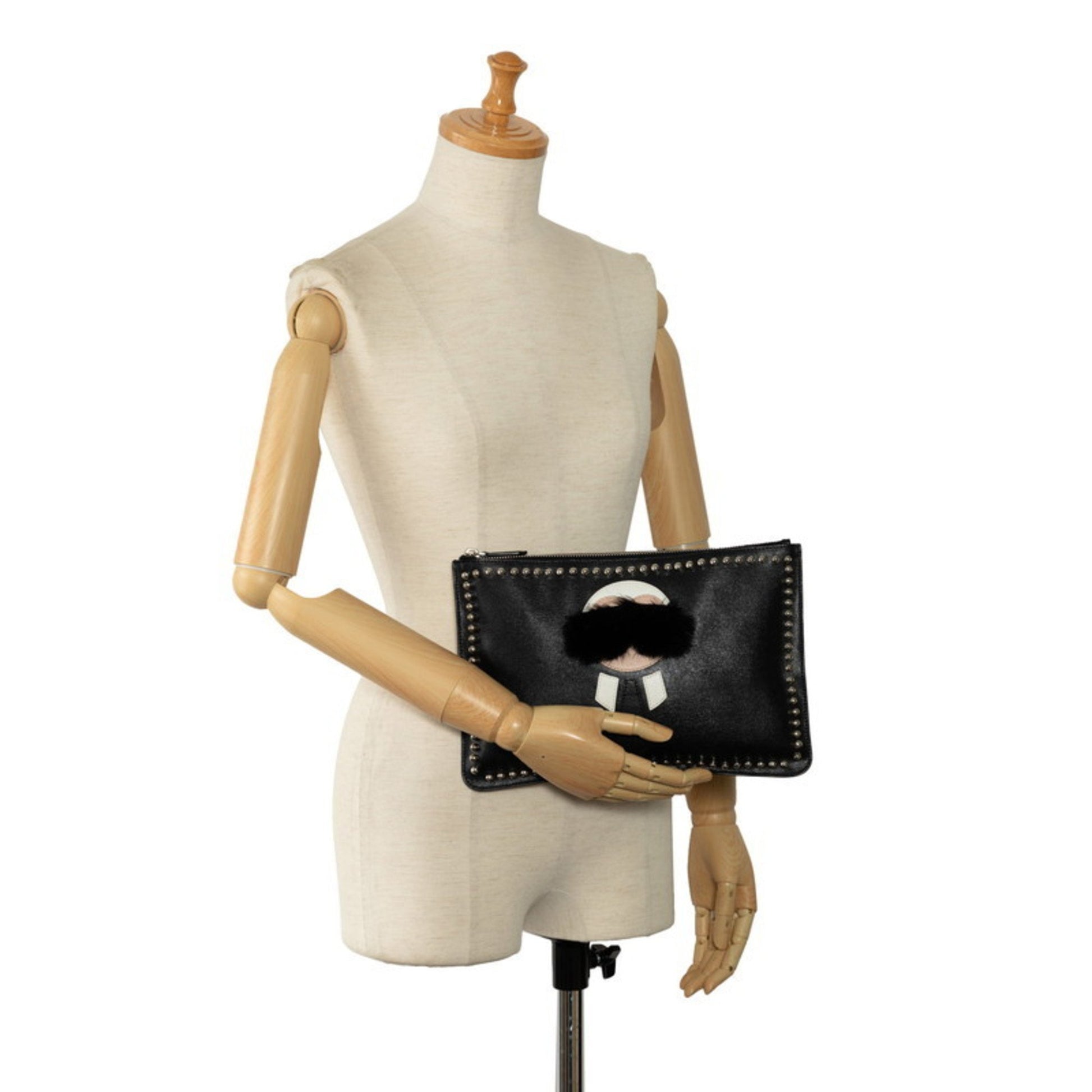 Fendi Karl Lagerfeld Clutch Bag 7N0078 52P Black Leather
