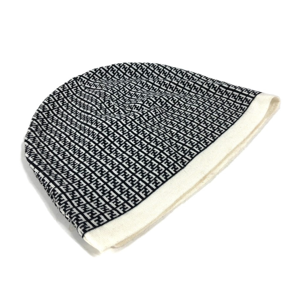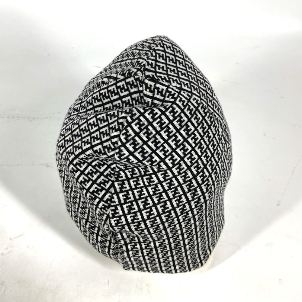 Fendi Knit Hat Fxq056 Wool Black Zucca Logo