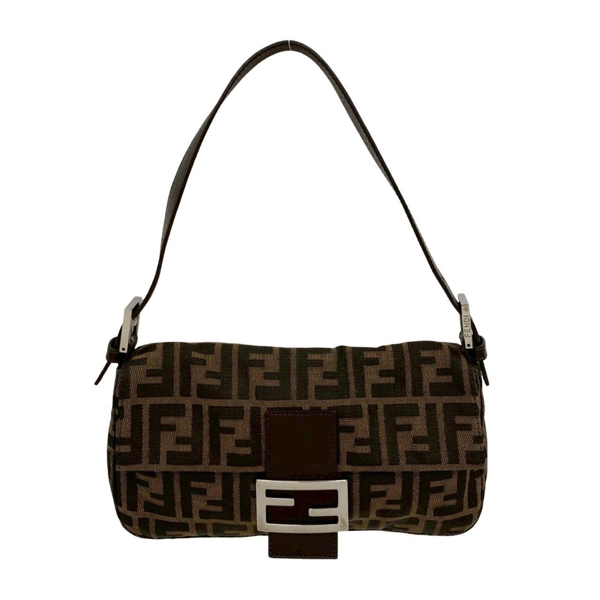 Fendi Mamma Bucket Zucca Ff Pattern Leather Canvas Semi-One Shoulder Bag Brown 20265