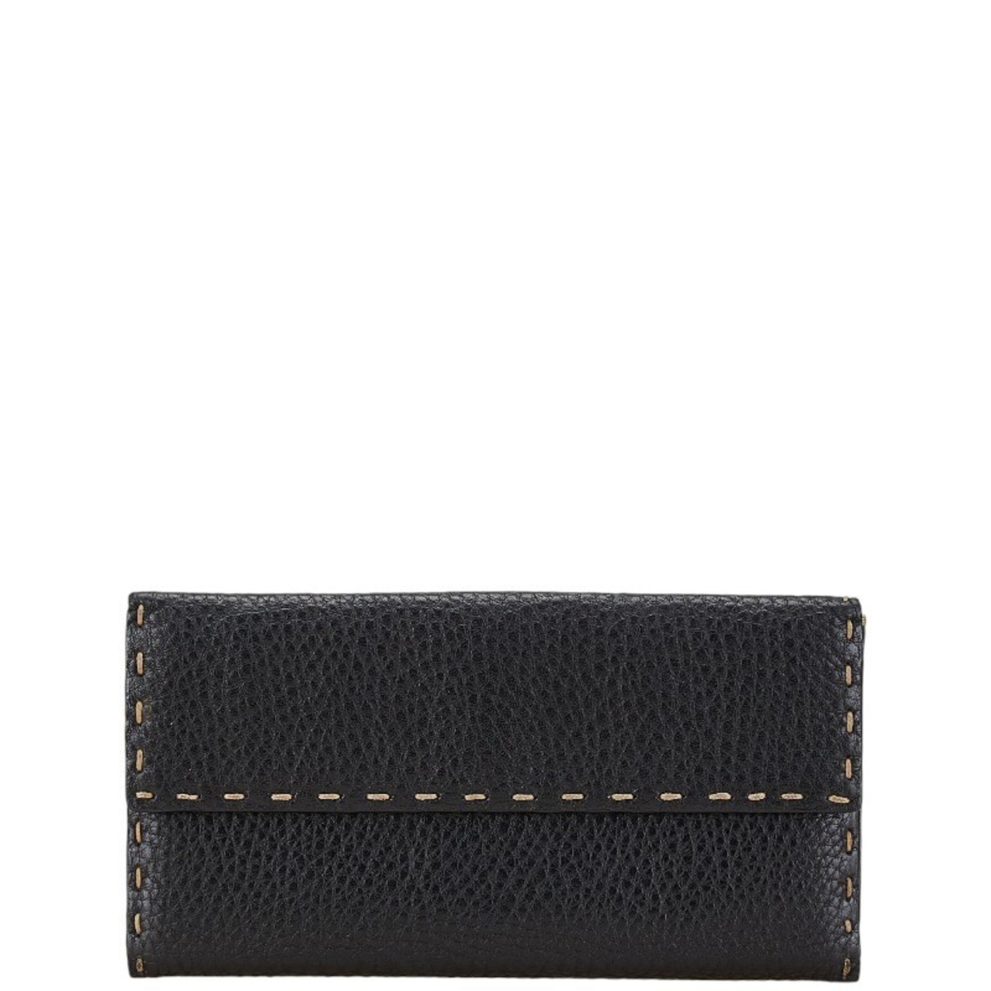 Fendi Selleria Stitch Long Wallet Navy Leather