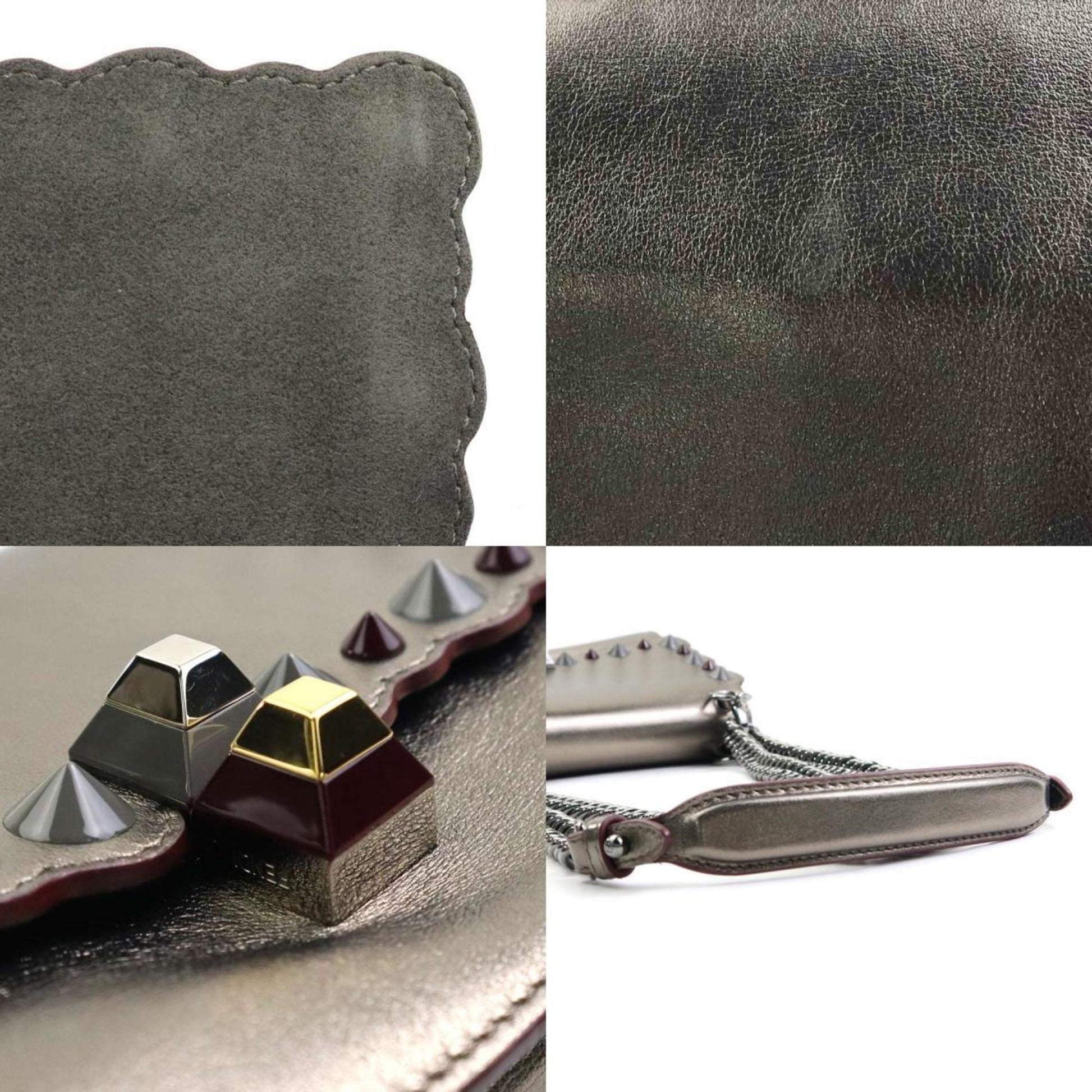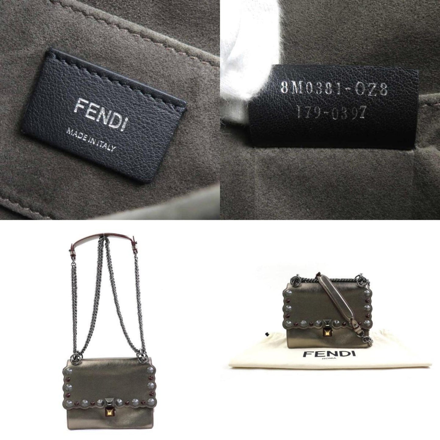 Fendi Shoulder Bag Canai Leather Metallic Gray Gold