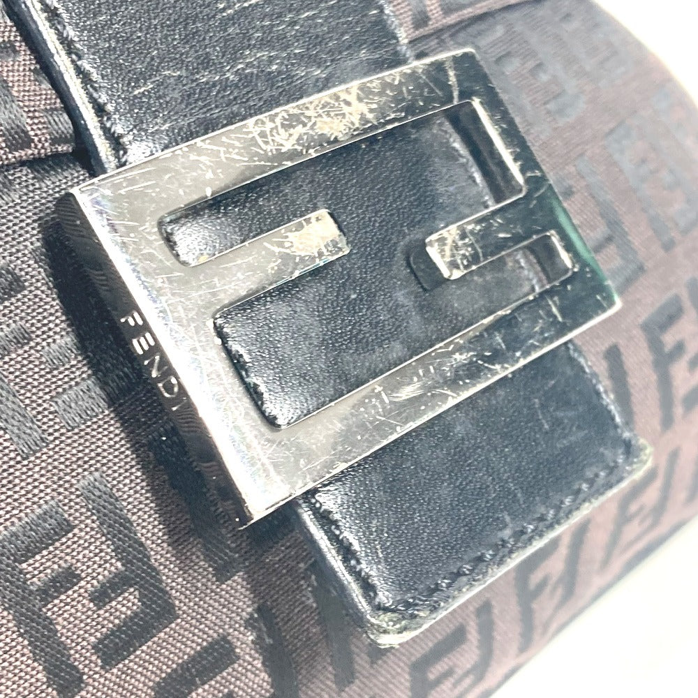 Fendi Shoulder Bag Leather / Canvas Brown Zucchino Logo Flap
