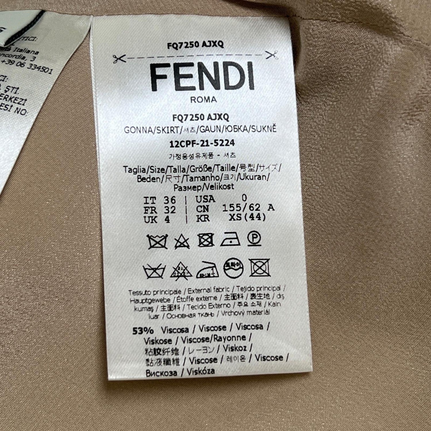 Fendi Skirt Fq7250 Viscose (Rayon) Beige 36