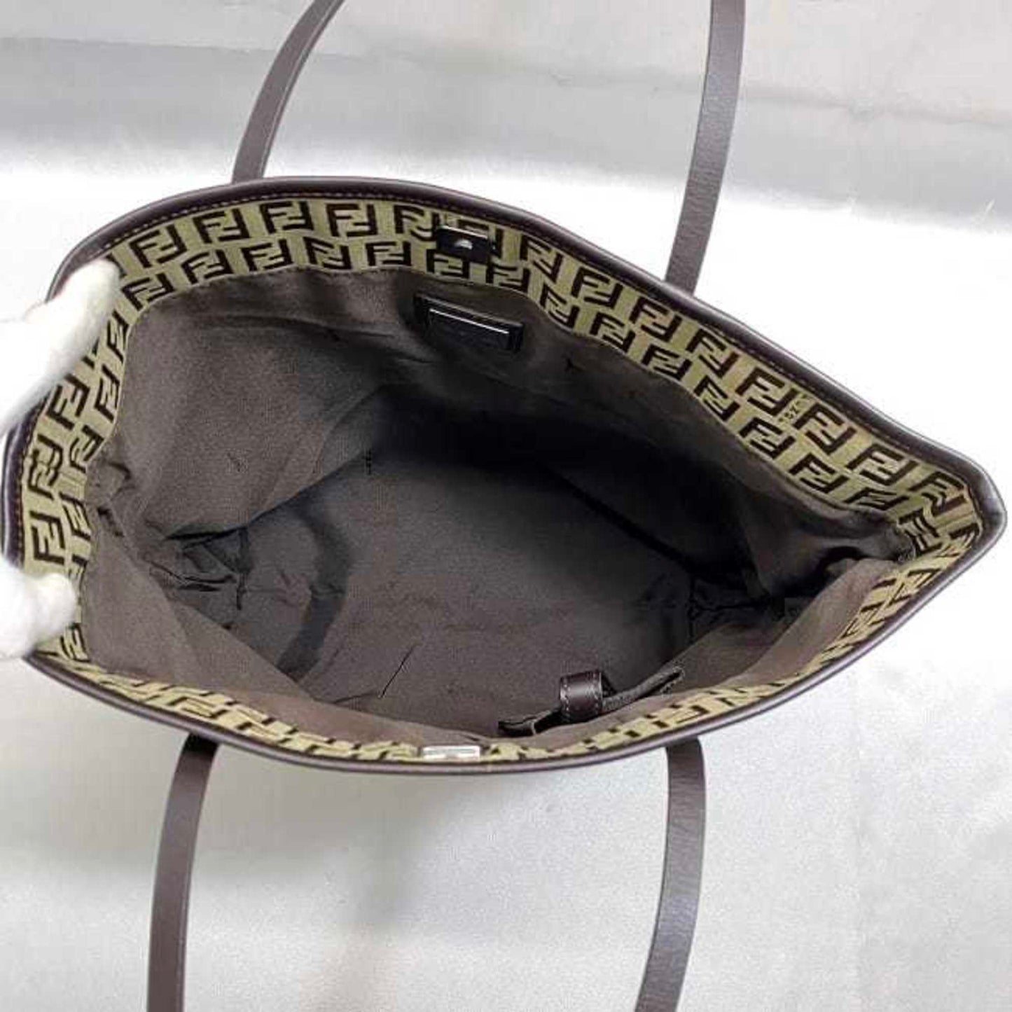 Fendi Tote Bag Ec-21844 Beige Brown Zucchino Canvas Leather Fendi Ff