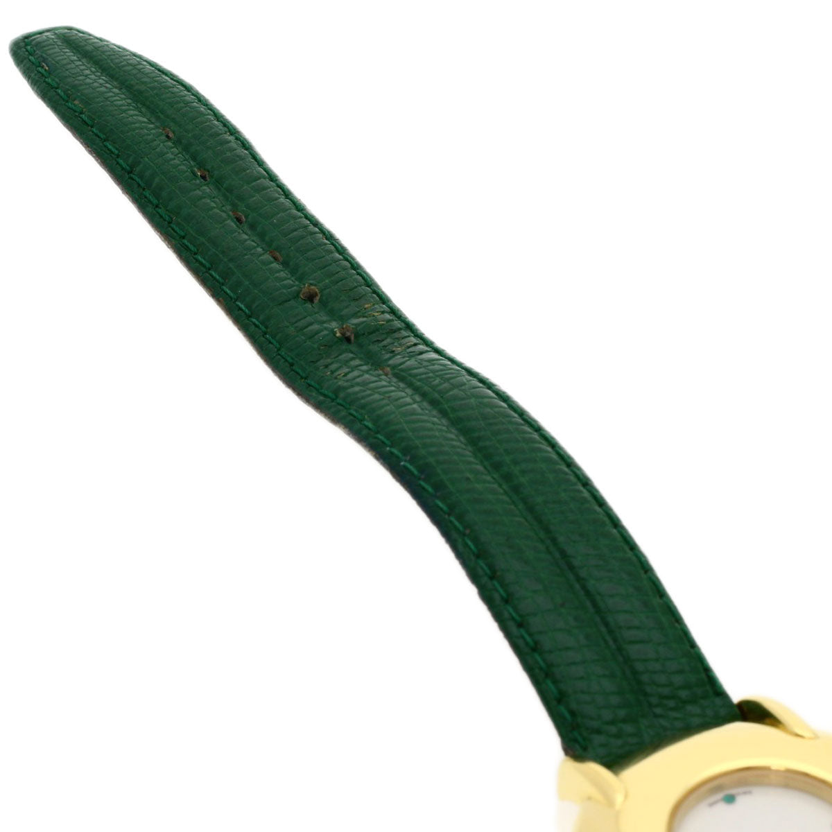 Condition: Condition Areas of damage: Case) Scratches/tarnish/Metal stripping/Rubbed Bezel) Scratches/tarnish/Metal stripping/Rubbed Band) Rubbed/Stain/Material peeling off/Rubbed/Deformed/Fray Crown) Minor scratches/Rubbed/tarnish/Stain Clasp) Rubbed/tarnish/Metal stripping//Lightly dirty/Scratches Case back) Rubbed/Scratches/tarnish/Metal stripping/Dent Notes There are scratches from prying open the case back. The hands are dull and have minor scratches. The free-floating leather is missing.