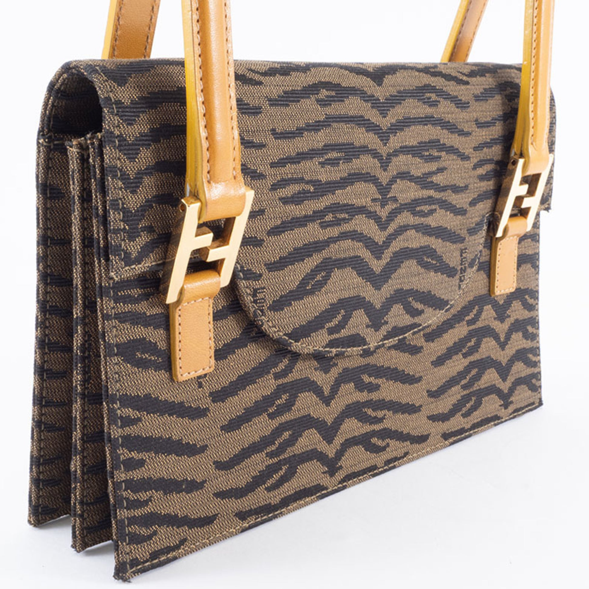 Fendi Zebra Handbag 26346 Canvas/Leather Brown