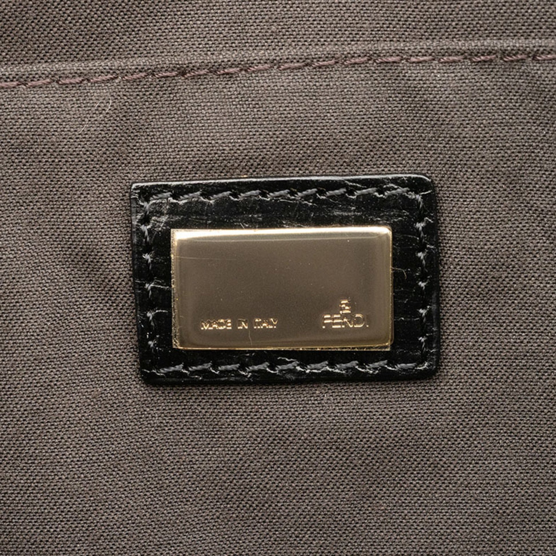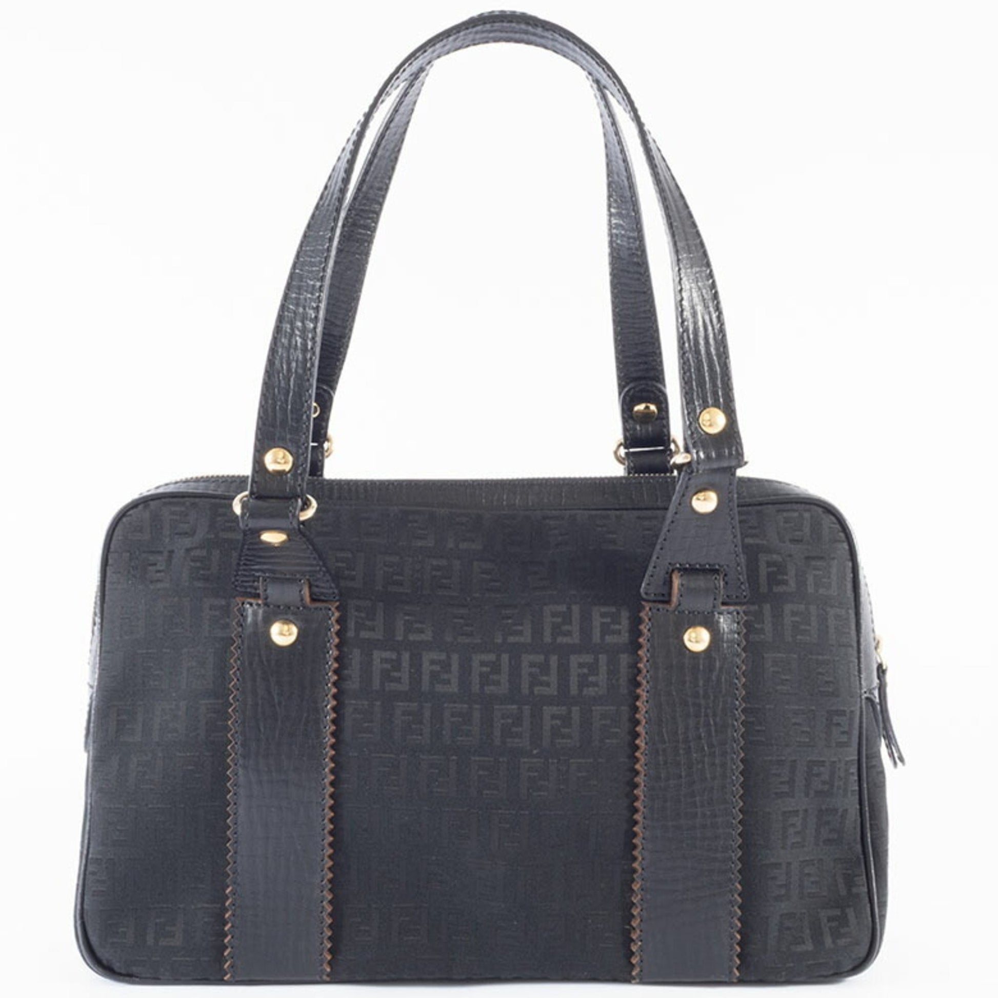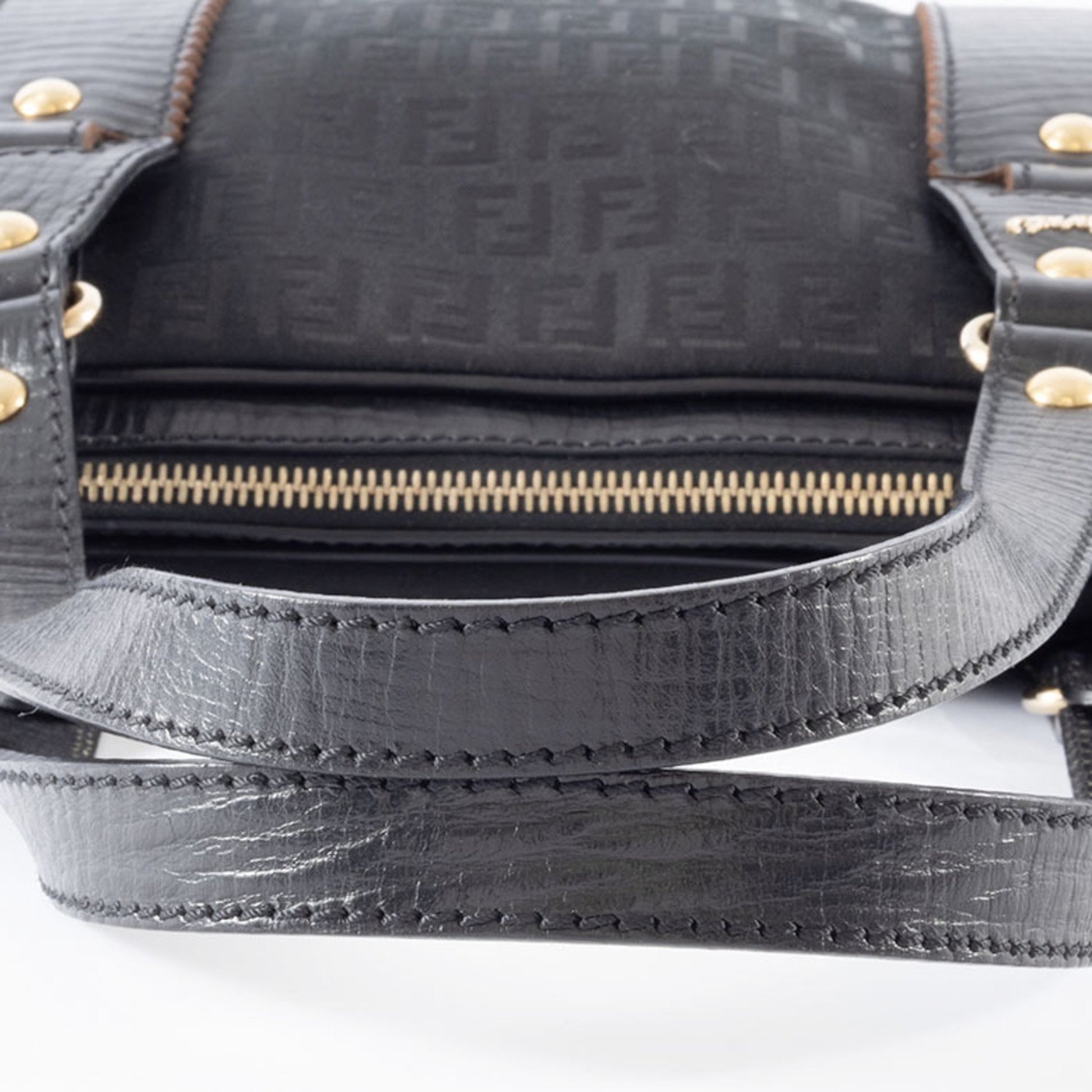Fendi Zucca Canvas Handbag 8Bn161 Leather Black