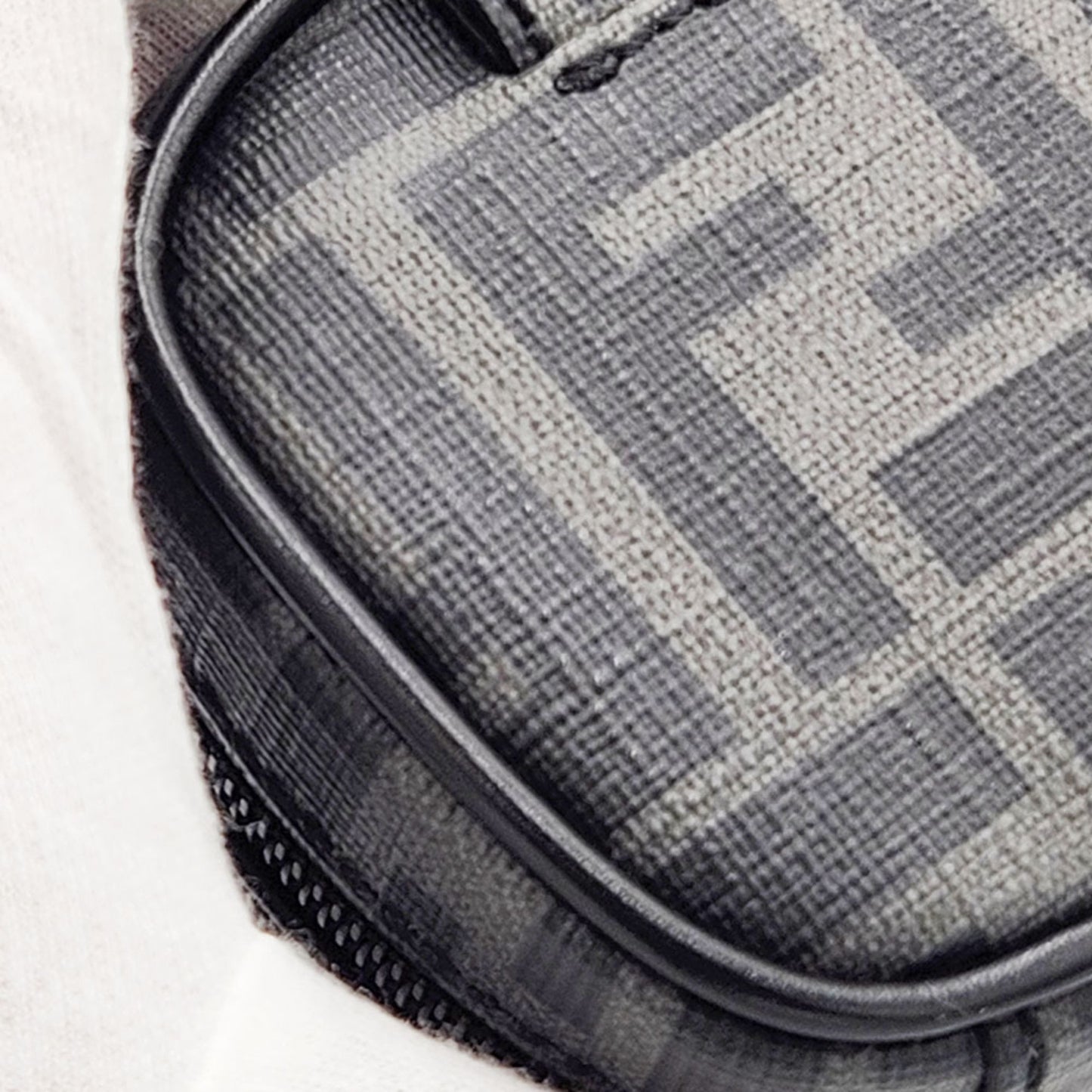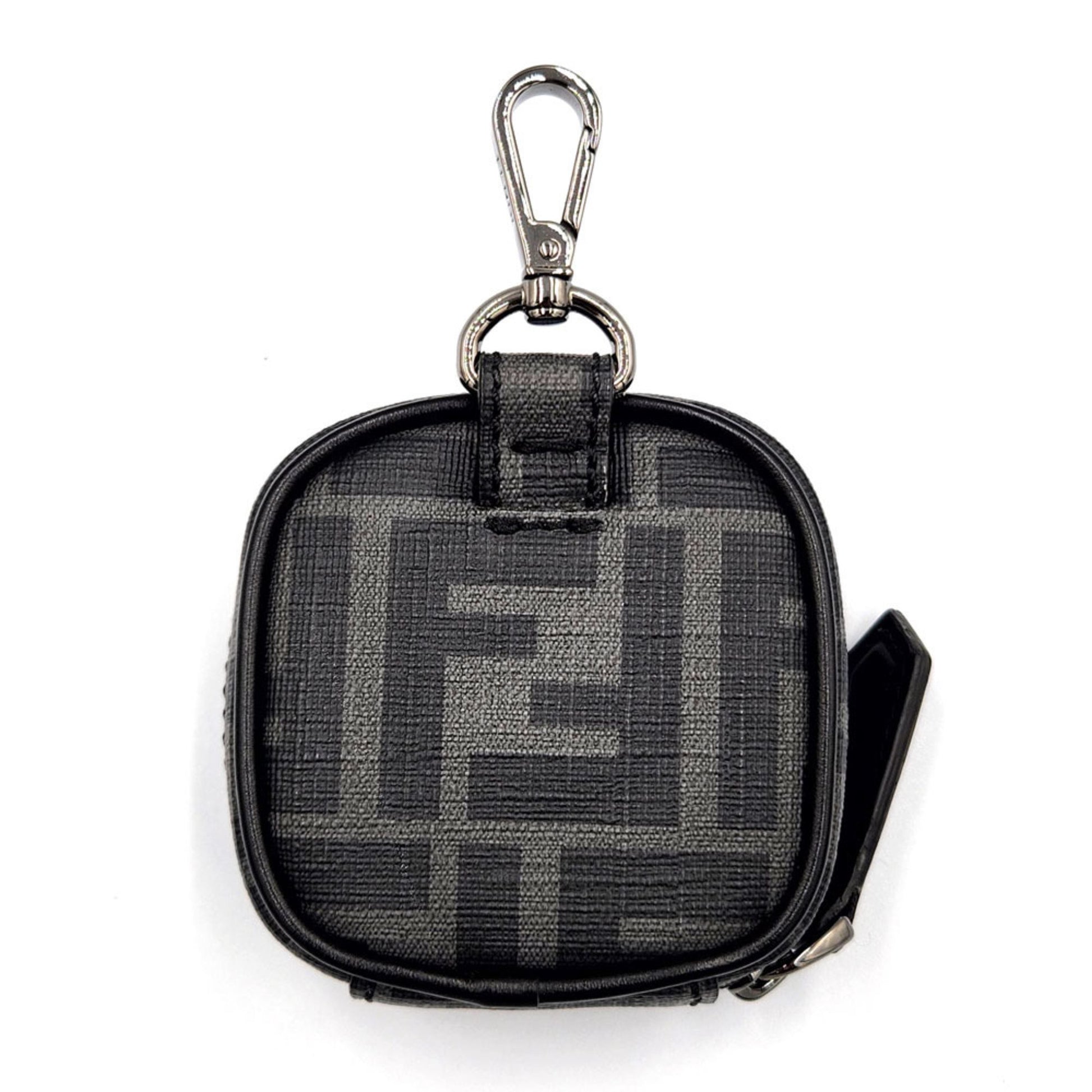 Fendi Zucca Mini Pouch Earphone Case 7As121 Black Canvas Bag Charm Key Holder