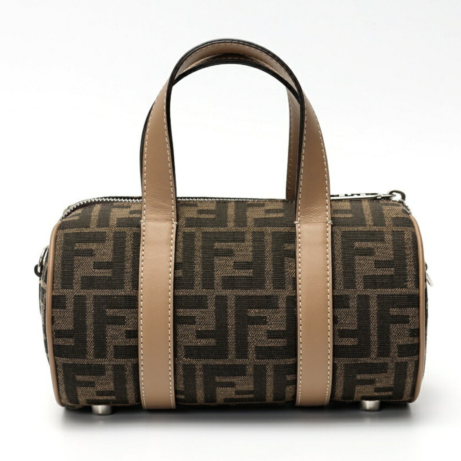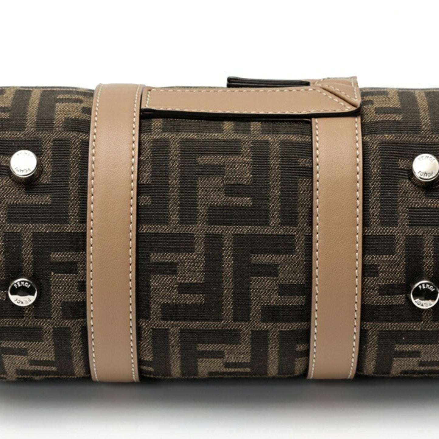 Fendi Zucca Small Boston Bag Shoulder 7Va570 Canvas Leather Brown Greige K-158807
