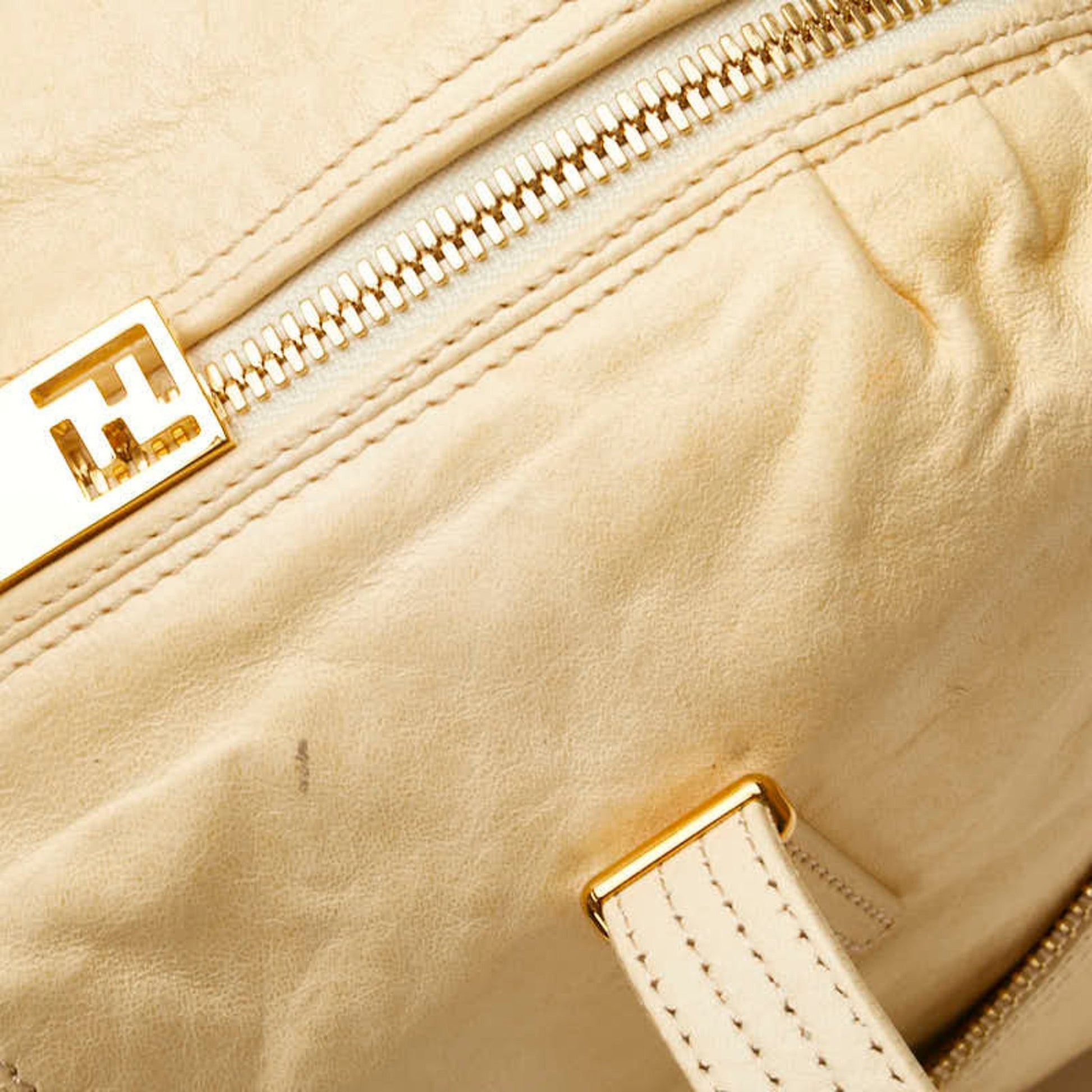 Fendi Zucca Unzipped Tote Bag Shoulder 8Br623 Beige Leather