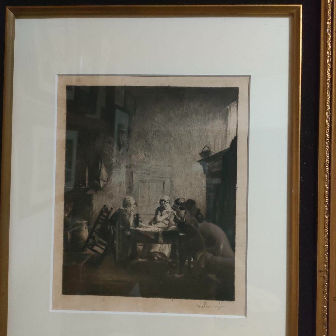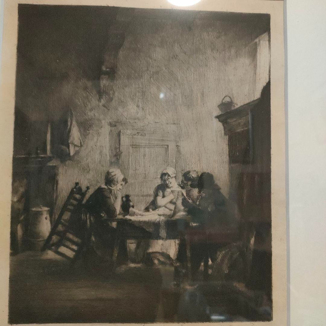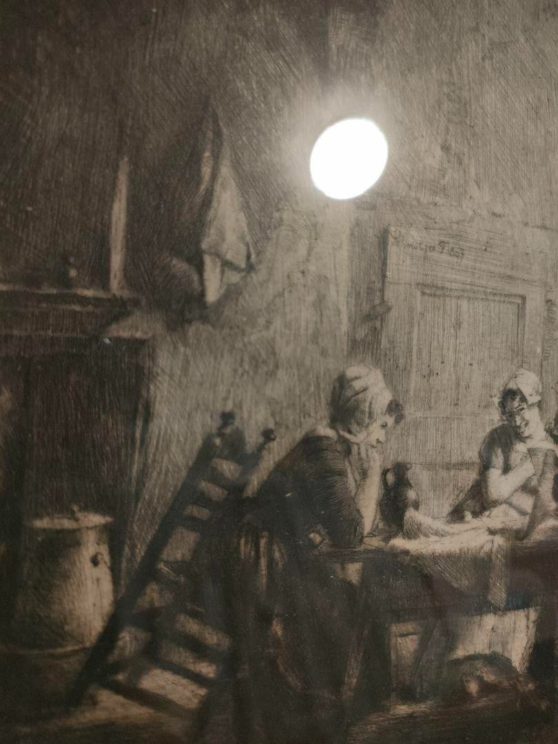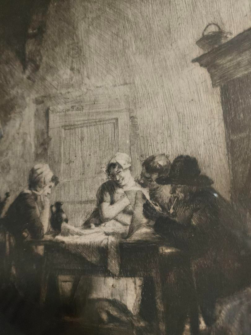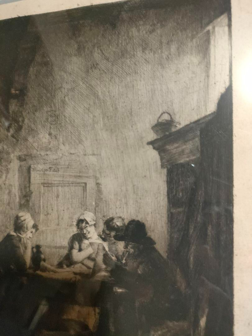 Ferdinand Schmutzer Signed Original Etching -Die Unterhaltung 1897 Edamer Hospiz