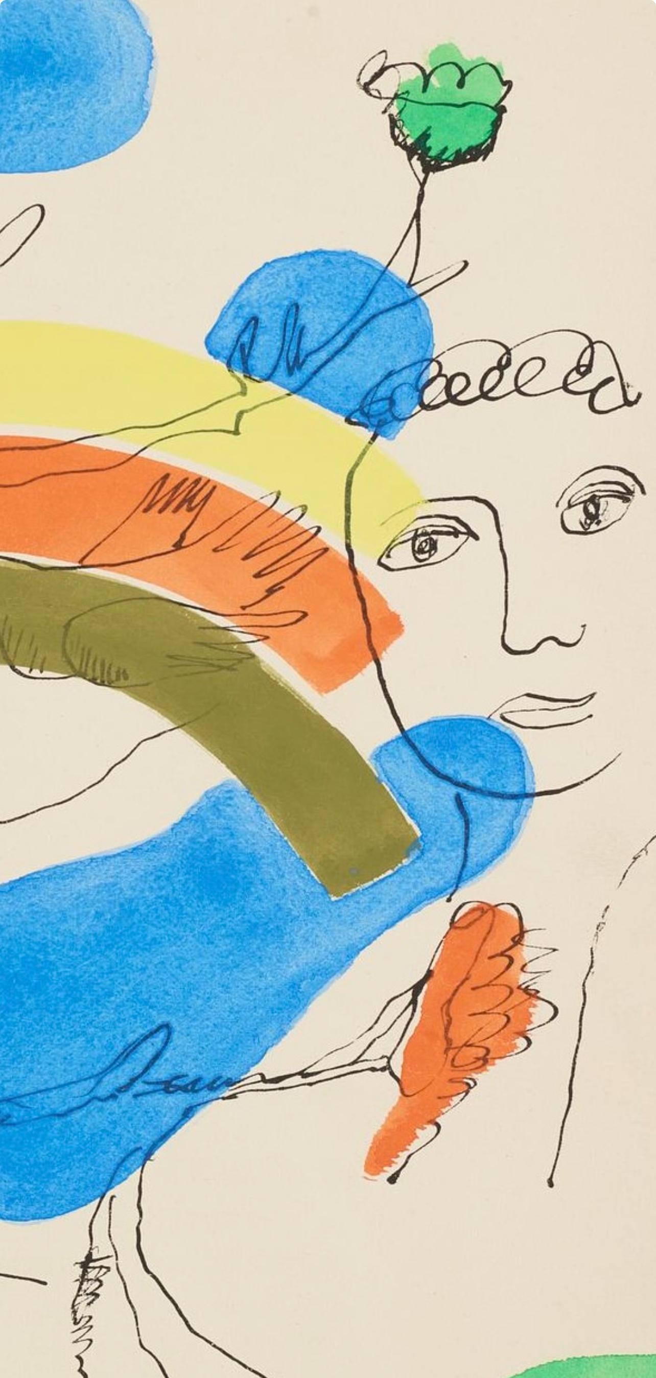 Lithograph on papier vlin teint, fait a la main paper. Paper size: 13 x 9.75 inches. Excellent condition. Inscription: Unsigned and unnumbered, as issued. Notes: From the folio, Les Illuminations, 1949. Published by Grosclaude, ditions des Gaules, Lausanne; printed by Roth & Sauter SA, Lausanne. Excerpted from the folio (translated from French), This edition, illuminations, by Arthur Rimbaud is directed by Louis Grosclaude with the collaboration of Irne Andriny who......