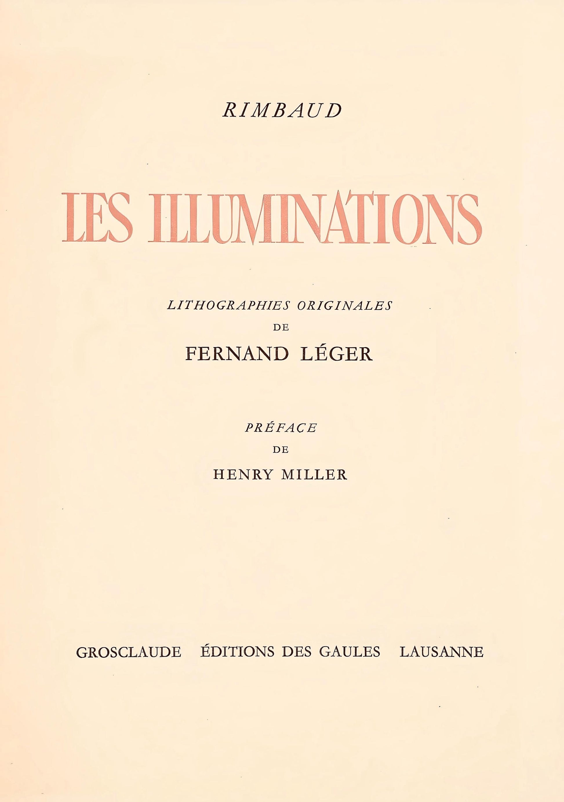 Lithograph on papier vlin teint, fait a la main paper. Paper size: 13 x 9.75 inches. Excellent condition. Inscription: Unsigned and unnumbered, as issued. Notes: From the folio, Les Illuminations, 1949. Published by Grosclaude, ditions des Gaules, Lausanne; printed by Roth & Sauter SA, Lausanne. Excerpted from the folio (translated from French), This edition, illuminations, by Arthur Rimbaud is directed by Louis Grosclaude with the collaboration of Irne Andriny who was the publisher's precious inspirer for seven years. The central printing office in Lausanne, directed by Arthur Margot, Hans Brand collaborator, composed the text by hand. The original lithographies of Fernand Lger are stone-drawn by Roth & Sauter, printers in Lausanne. Papier pur chiffon fait a la main a t fabriqu made especially for this edition by the papeteries de Lana in Docelles. The text is composed in Garamond according to Cluny's edition. The lithographies are colored with a stencil under the direction of Louis Grosclaude. Completed printing on July 14, One Thousand Nine Hundred and Forty-Nine. The print run is limited to 395 examples: 25 examples on papier vlin teint, with a series of Fernand Lger's lithographies on papier de Chine, and the artist's original gouache, numbered from I to 25; 75 examples on papier velin teinte, lourd, with a sequence of lithographies on Chine, numbered from 26 to 100; 275 examples on papier vlin teint, fait a la main, numbered from 101 to 375; 20 examples are intended for employees, they are numbered from I to XX.