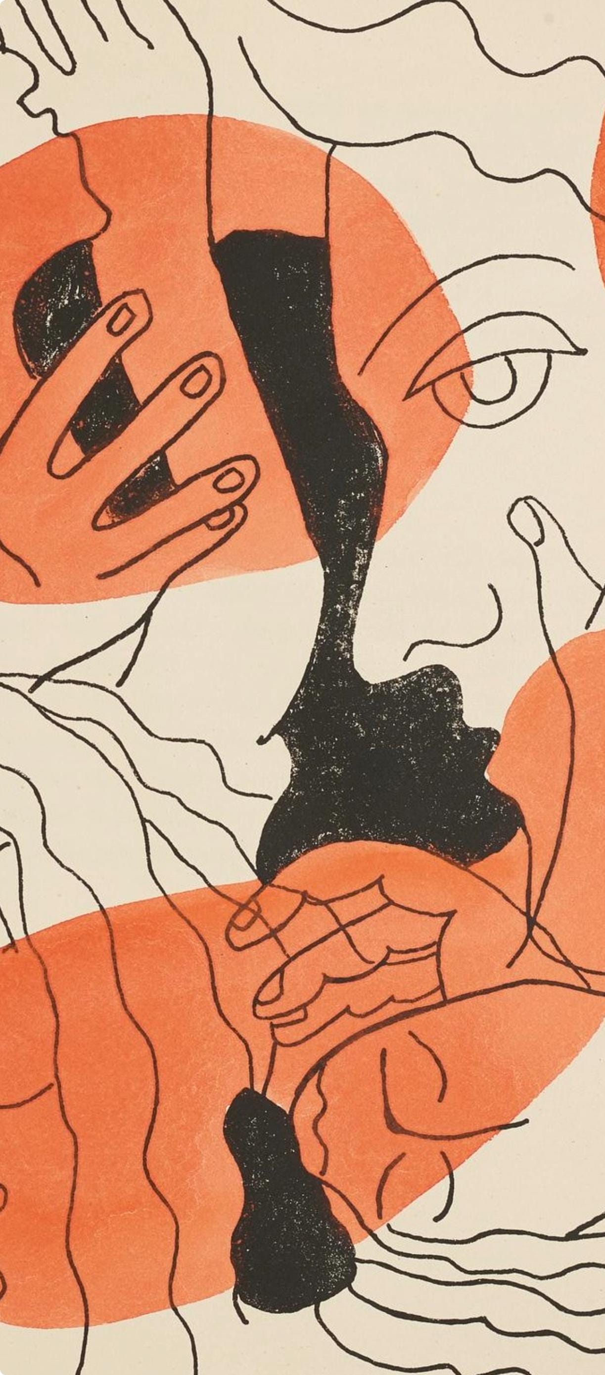Lithograph on papier vlin teint, fait a la main paper. Paper size: 13 x 9.75 inches. Excellent condition. Inscription: Unsigned and unnumbered, as issued. Notes: From the folio, Les Illuminations, 1949. Published by Grosclaude, ditions des Gaules, Lausanne; printed by Roth & Sauter SA, Lausanne. Excerpted from the folio (translated from French), This edition, illuminations, by Arthur Rimbaud is directed by Louis Grosclaude with the collaboration of Irne Andriny who was the publisher's precious inspirer for seven years. The central printing office in Lausanne, directed by Arthur Margot, Hans Brand collaborator, composed the text by hand. The original lithographies of Fernand Lger are stone-drawn by Roth & Sauter, printers in Lausanne. Papier pur chiffon fait a la main a t fabriqu made especially for this edition by the papeteries de Lana in Docelles. The text is composed in Garamond according to Cluny's edition. The lithographies are colored with a stencil under the direction of Louis Grosclaude. Completed printing on July 14, One Thousand Nine Hundred and Forty-Nine. The print run is limited to 395 examples: 25 examples on papier vlin teint, with a series of Fernand Lger's lithographies on papier de Chine, and the artist's original gouache, numbered from I to 25; 75 examples on papier velin teinte, lourd, with a sequence of lithographies on Chine, numbered from 26 to 100; 275 examples on papier vlin teint, fait a la main, numbered from 101 to 375; 20 examples are intended for employees, they are numbered from I to XX.