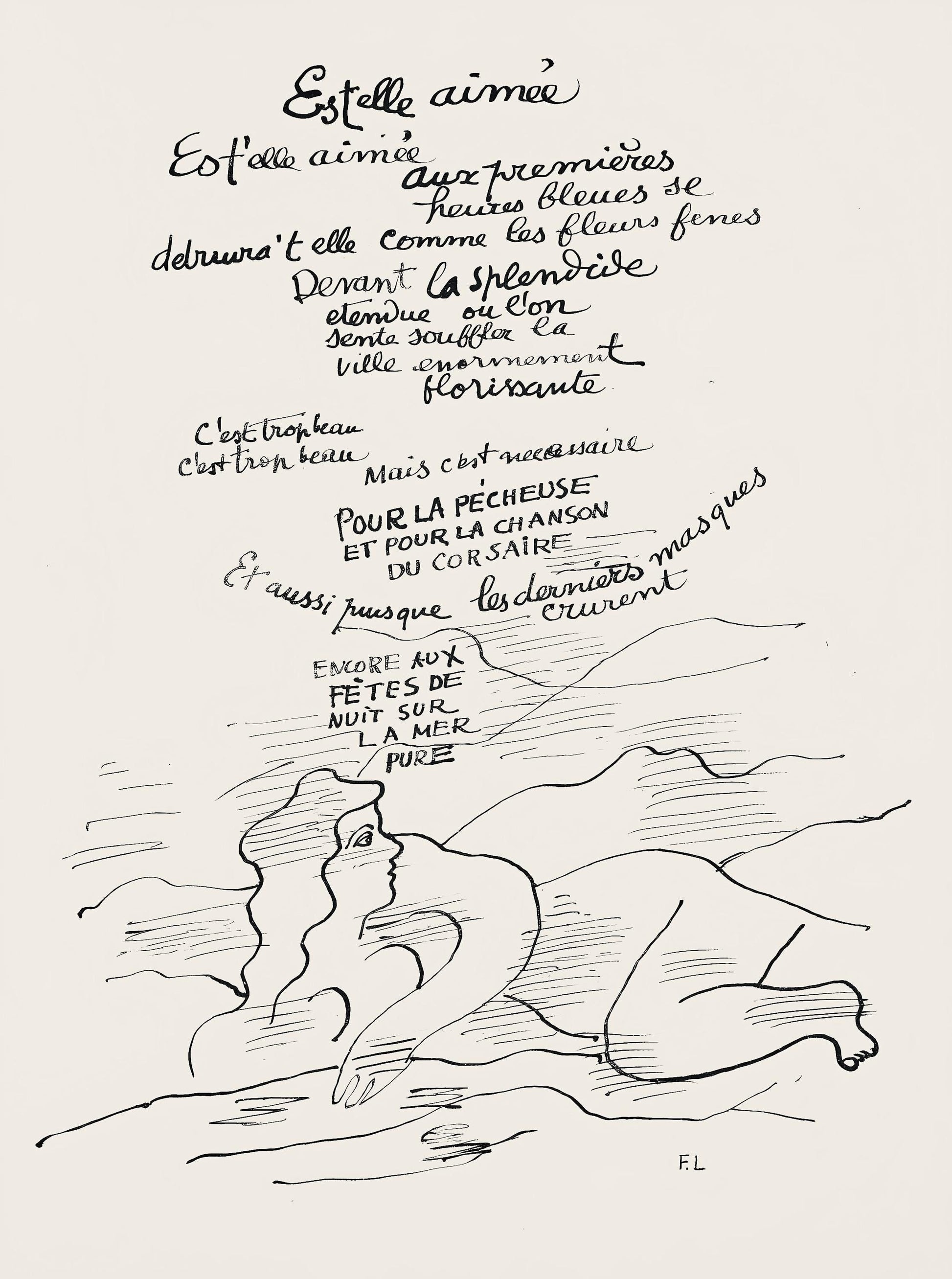 Lithograph on papier vlin teint, fait a la main paper. Paper size: 13 x 9.75 inches. Excellent condition. Inscription: Unsigned and unnumbered, as issued. Notes: From the folio, Les Illuminations, 1949. Published by Grosclaude, ditions des Gaules, Lausanne; printed by Roth & Sauter SA, Lausanne. Excerpted from the folio (translated from French), This edition, illuminations, by Arthur Rimbaud is directed by Louis Grosclaude with the collaboration of Irne Andriny who was the publisher's precious inspirer for seven years. The central printing office in Lausanne, directed by Arthur Margot, Hans Brand collaborator, composed the text by hand. The original lithographies of Fernand Lger are stone-drawn by Roth & Sauter, printers in Lausanne. Papier pur chiffon fait a la main a t fabriqu made especially for this edition by the papeteries de Lana in Docelles. The text is composed in Garamond according to Cluny's edition. The lithographies are colored with a stencil under the direction of Louis Grosclaude. Completed printing on July 14, One Thousand Nine Hundred and Forty-Nine. The print run is limited to 395 examples: 25 examples on papier vlin teint, with a series of Fernand Lger's lithographies on papier de Chine, and the artist's original gouache, numbered from I to 25; 75 examples on papier velin teinte, lourd, with a sequence of lithographies on Chine, numbered from 26 to 100; 275 examples on papier vlin teint, fait a la main, numbered from 101 to 375; 20 examples are intended for employees, they are numbered from I to XX.