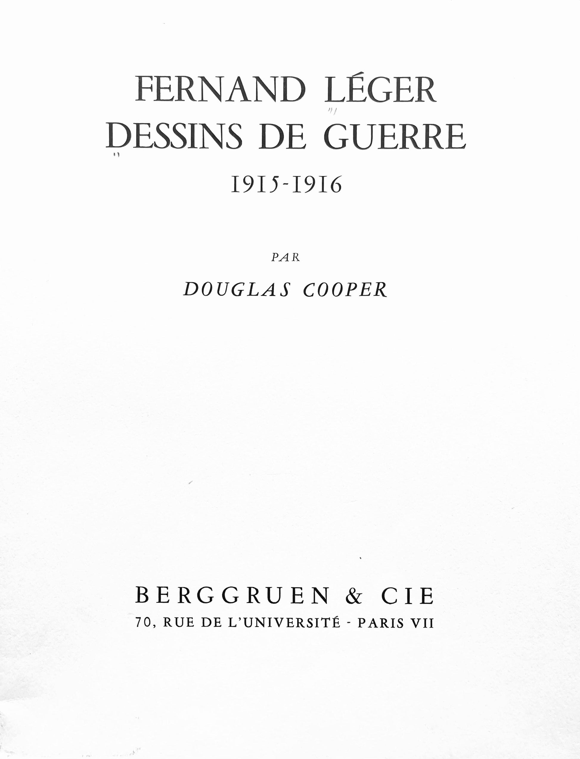 Lithograph and stencil on vlin paper. Paper size: 10.25 x 7.5 inches. Excellent condition. Unsigned and unnumbered, as issued. Notes: From the folio, Fernand Lger: Dessins de Guerre, 1956. Published by Berggruen & Cie, Paris; rendered by Daniel Jacomet, Paris; printed by l'atelier Daniel Jacomet, Paris, 1956. Excerpted from the folio (translated from French), Fernand Lger wanted this folio to be dedicated to the memory of Jeanne Lger (1895-1950). I dedicate this bo......