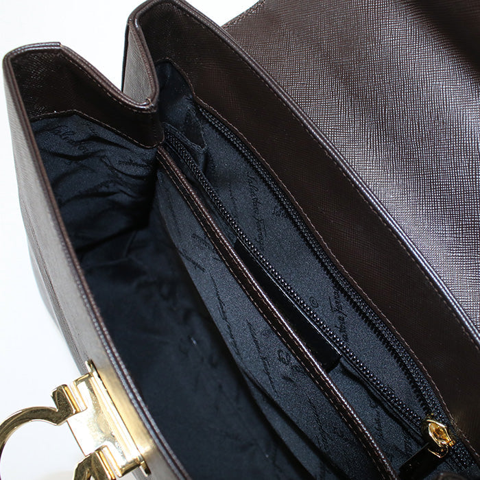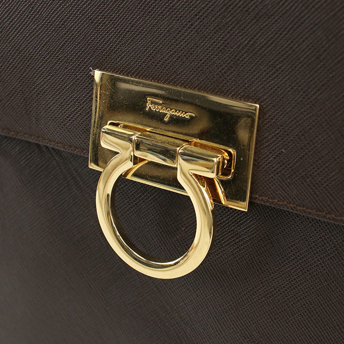 Ferragamo 21 0290 2Way Handbag Gancini Shoulder Bag Calfskin Brown Women