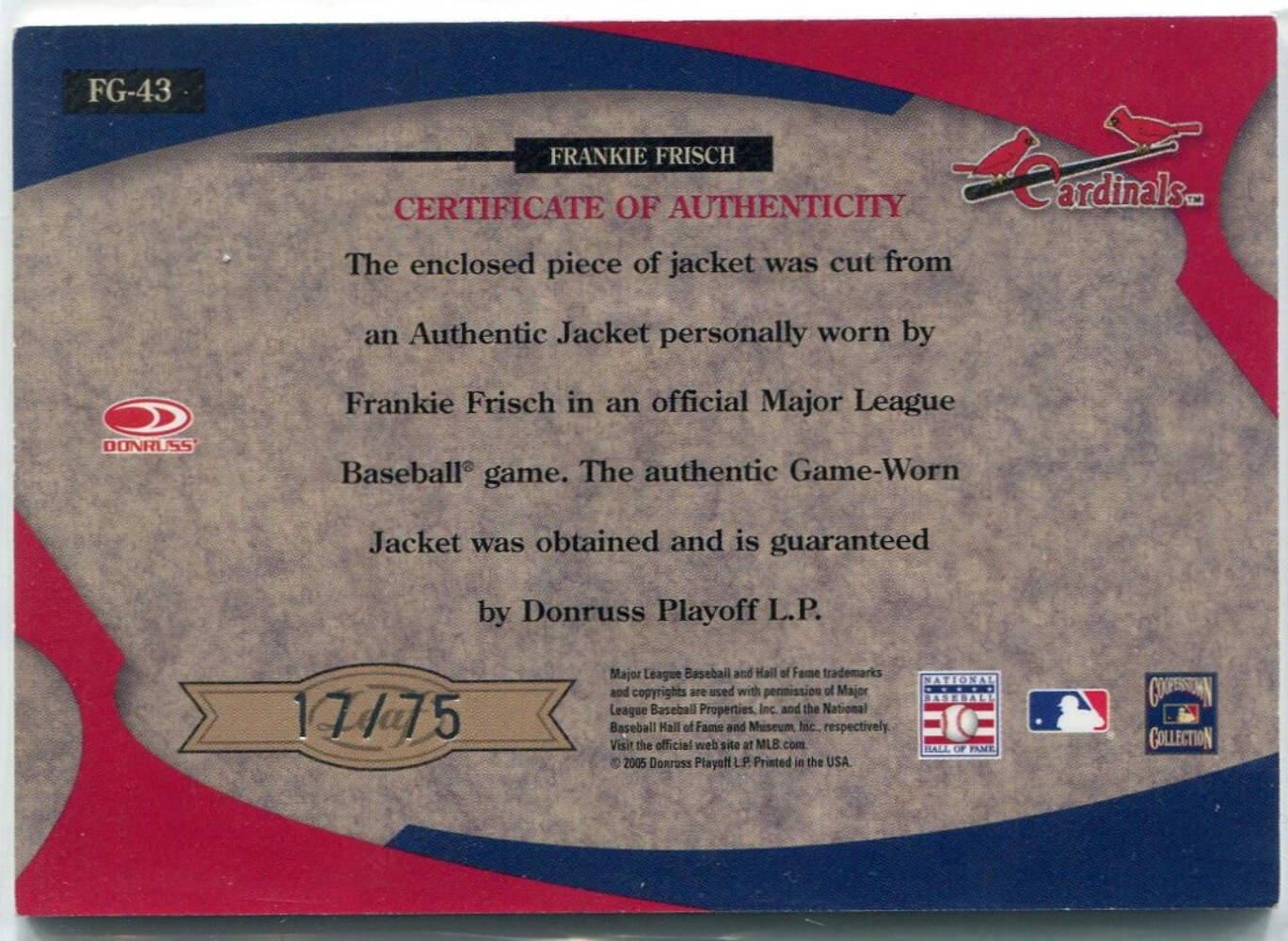 Frankie Firsch 2005 Leaf Certified Fabric Of The Game Dual Jersey Card 17/75