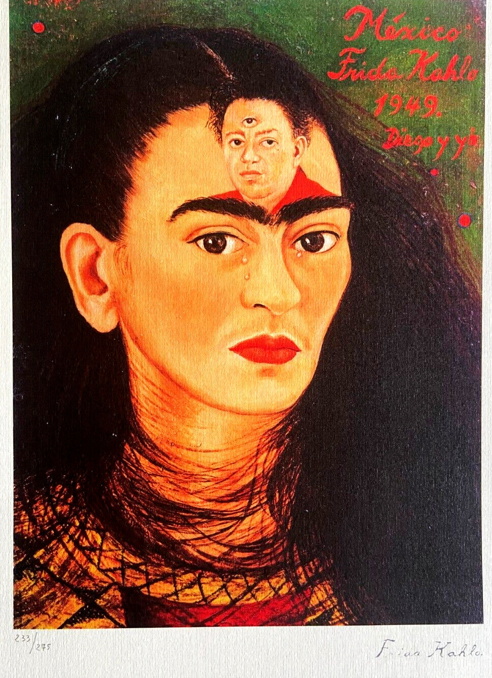 Frida Kahlo Lithograph 'Diego And I' Hand Numbered Signed Coa