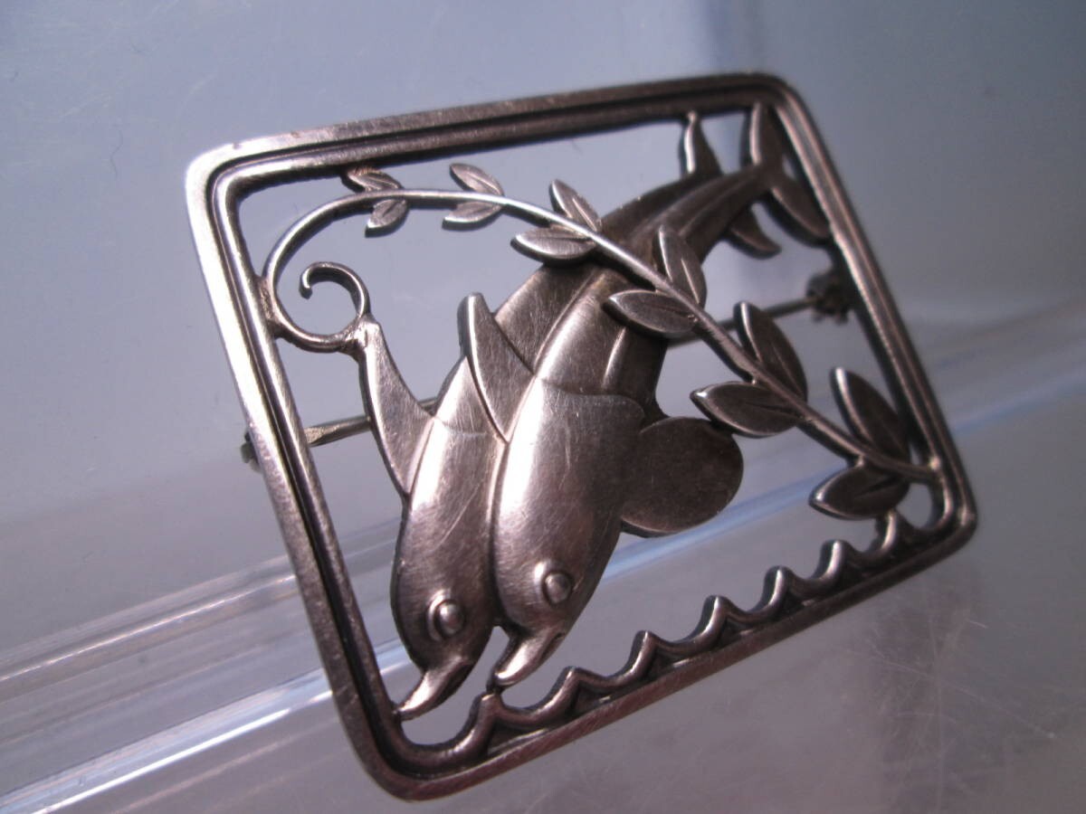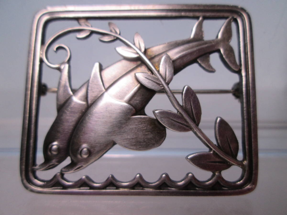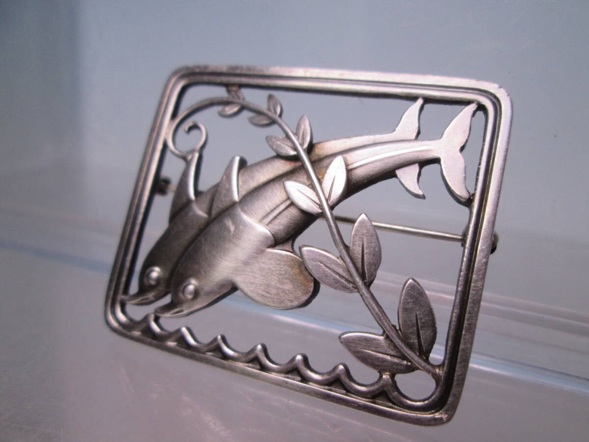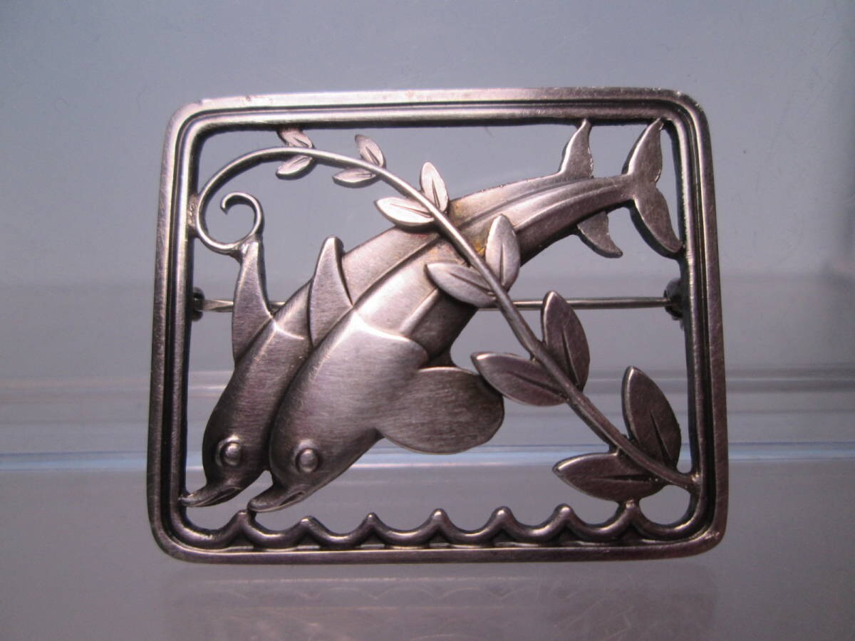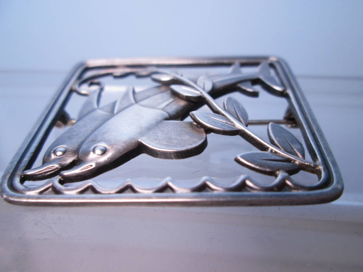 Georg Jensen. Malinowski Sterling Silver Brooch "Dolphin Square"
