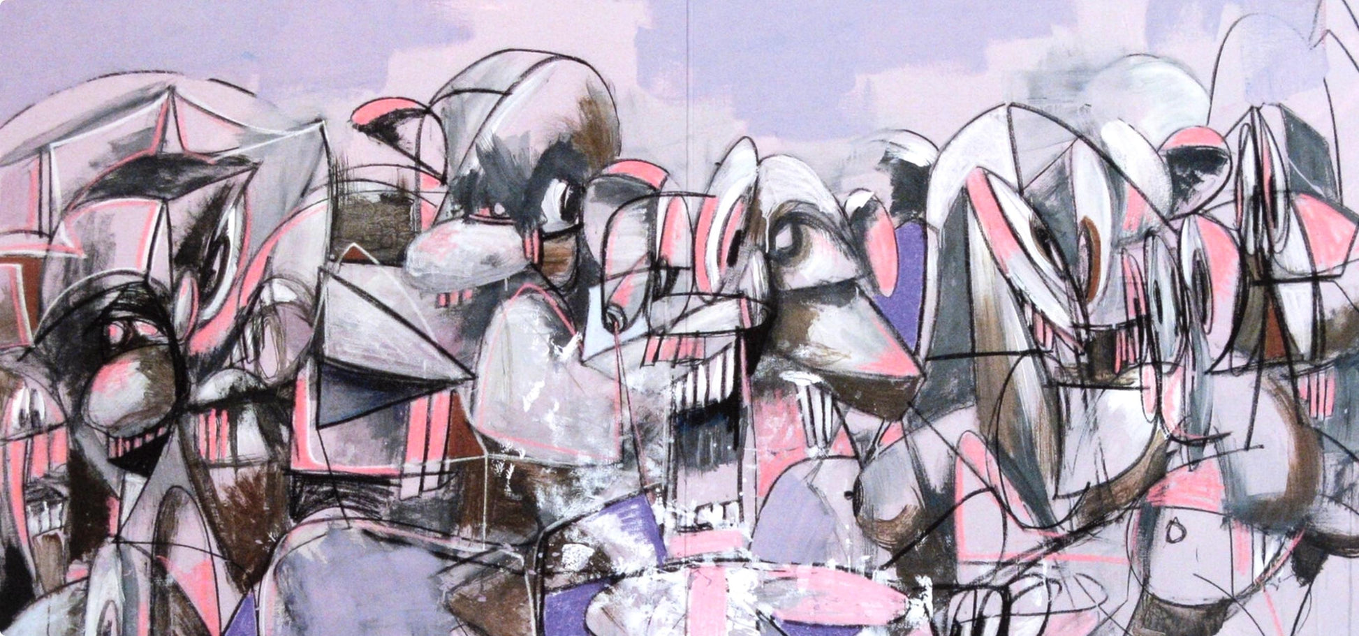 George Condo, Purple Compression, Drawing Paintings, Four Color Process Print