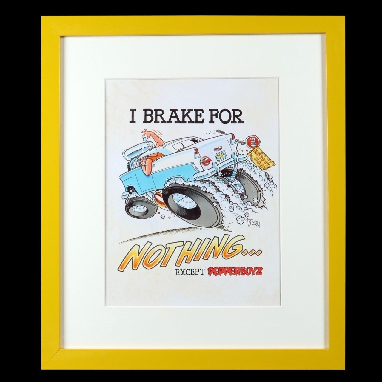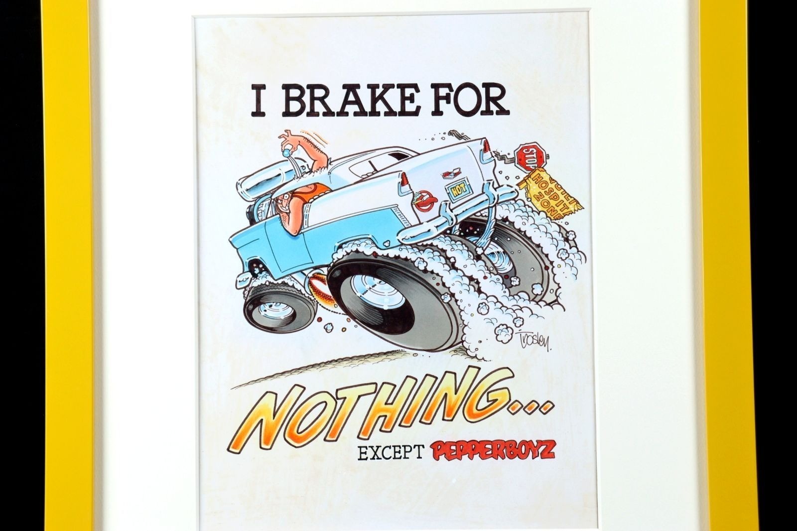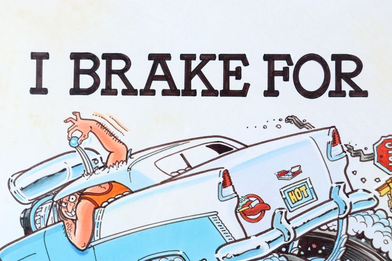 George Trosley Original Pen Drawing I Brake For Nothing Signed Usa Framed