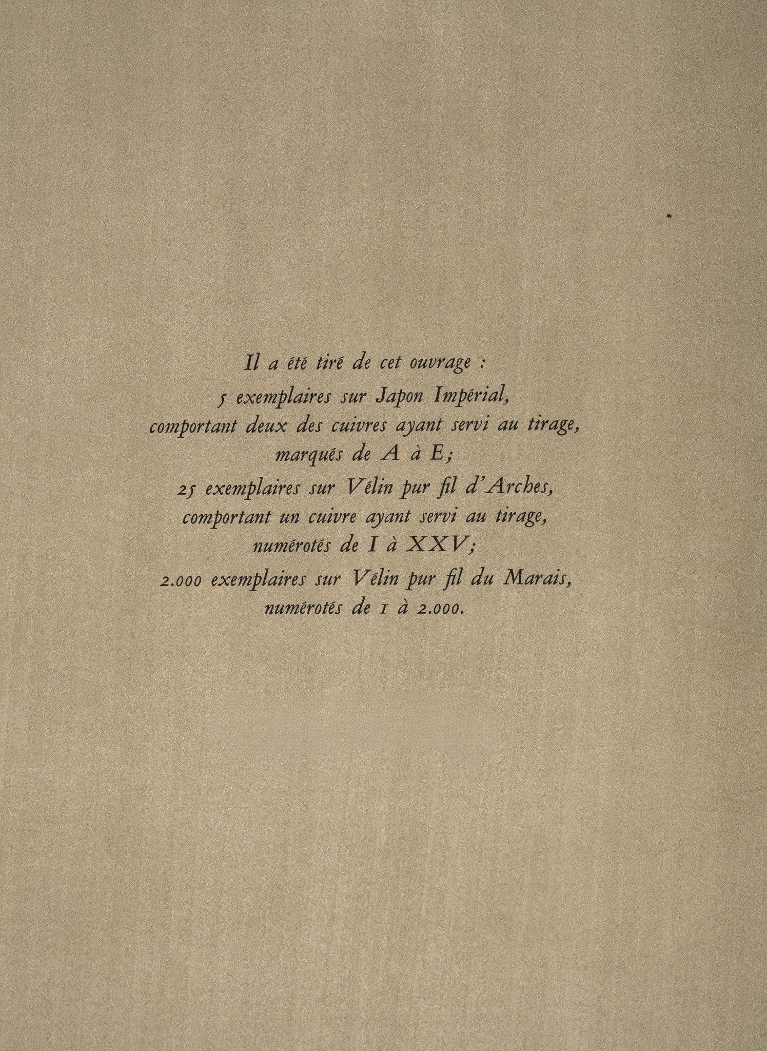 Hliogravure on vlin pur fil du Marais paper, archivally hinged on a vlin pur fil du Marais backing sheet, as issued. Paper Size: 19.25 x 15.25 inches. Excellent condition. Inscription: Unsigned and unnumbered, as issued. Notes: From the folio, Georges Rouault, Stella Vespertina, 1947. Published by Ren Drouin, diteur, Paris; printed by Matres-Imprimeurs, Draeger Frres, Paris. Excerpted from the folio (translated from French), It was taken from this folio: V examples on Japon Imprial, including two of the plates used in the print run, marked from A to E; XXV examples on Vlin pur fil d'Arches, comprising a plate used for the print run, numbered from I to XXV; MM examples on Vlin pur fil du Marais, numbered from I to MM.