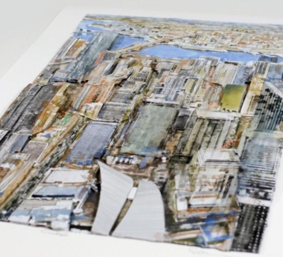Gottfried Salzmann "New York - East River" Mixed Media On Paper Signed