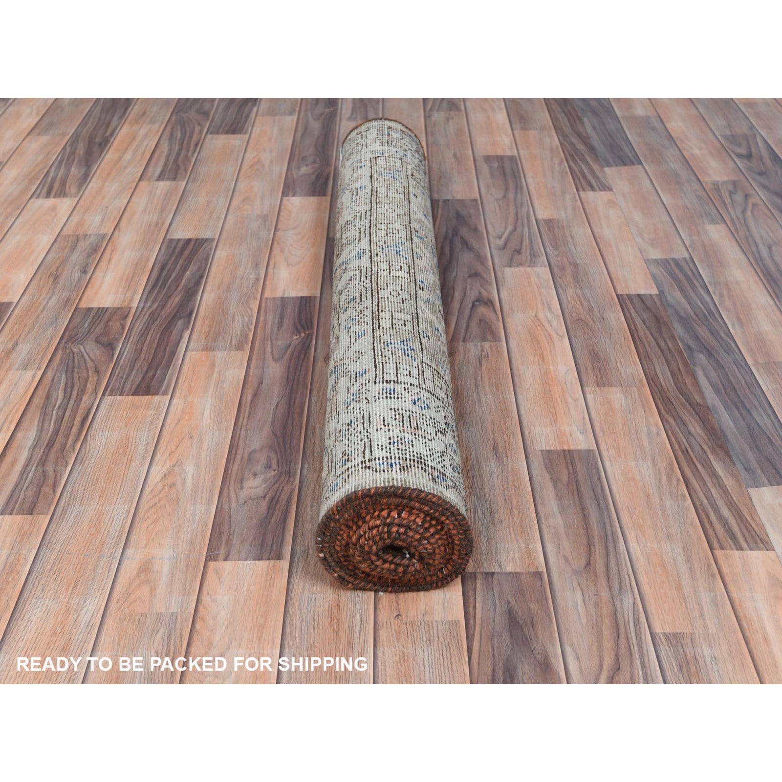 Green Worn Wool Hand Knotted Vintage Farsian Amadan Wide Runner Rug