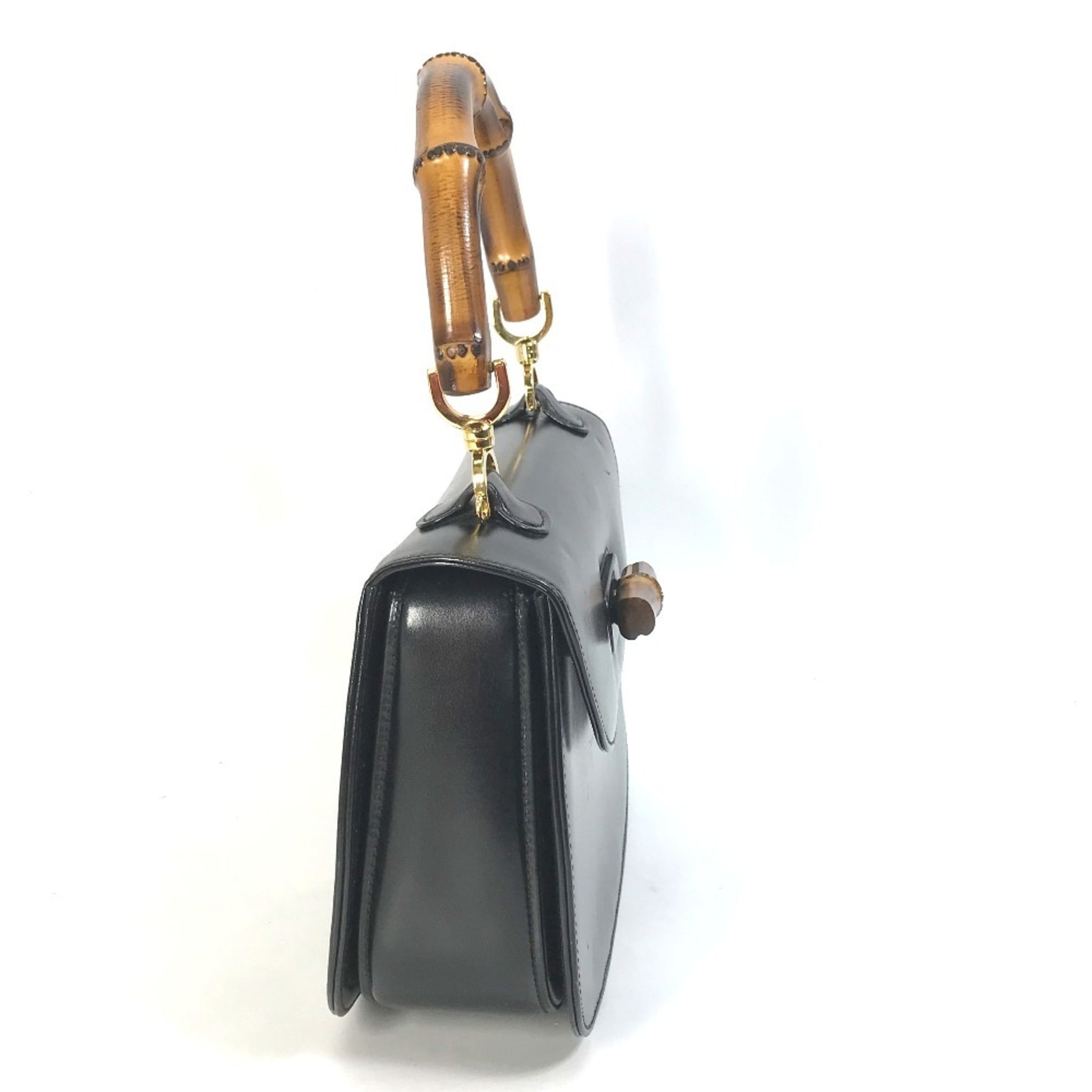 Gucci 000 1951 Turnlock Old Gucci Bamboo Top Handle Handbag In Leather/Bamboo