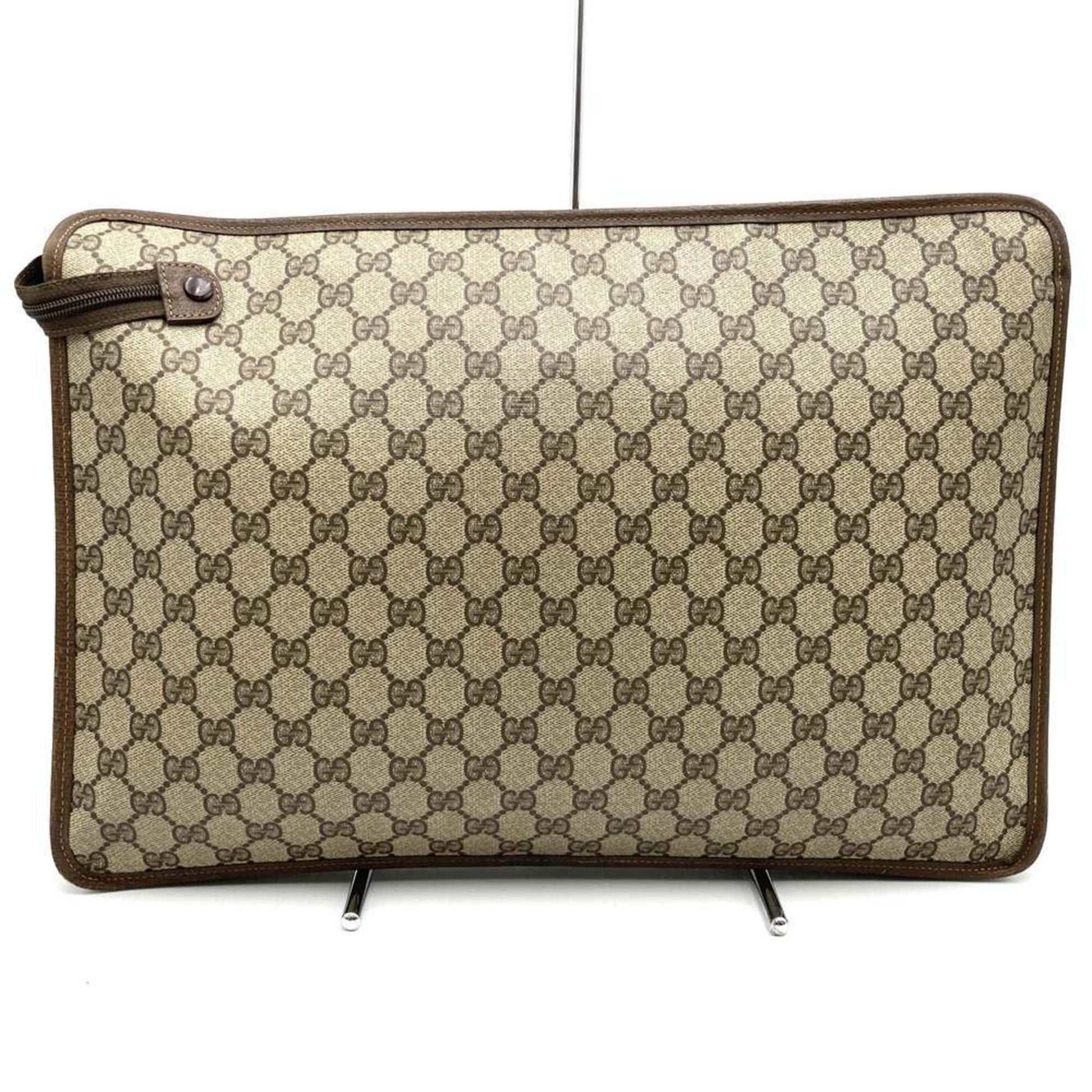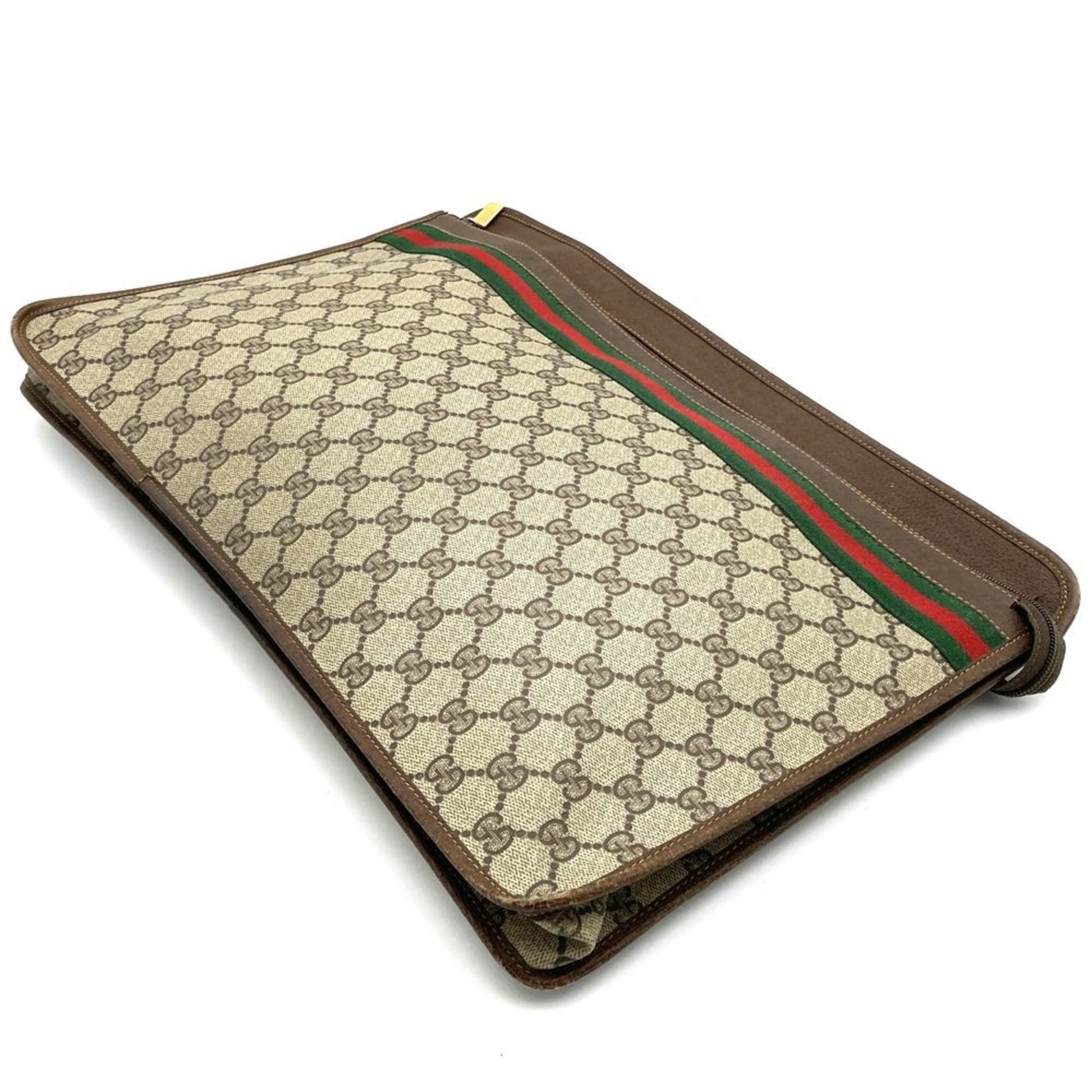 Gucci 017 115 Second Bag Clutch Pouch Gg Supreme Sherry Line Leather Brown
