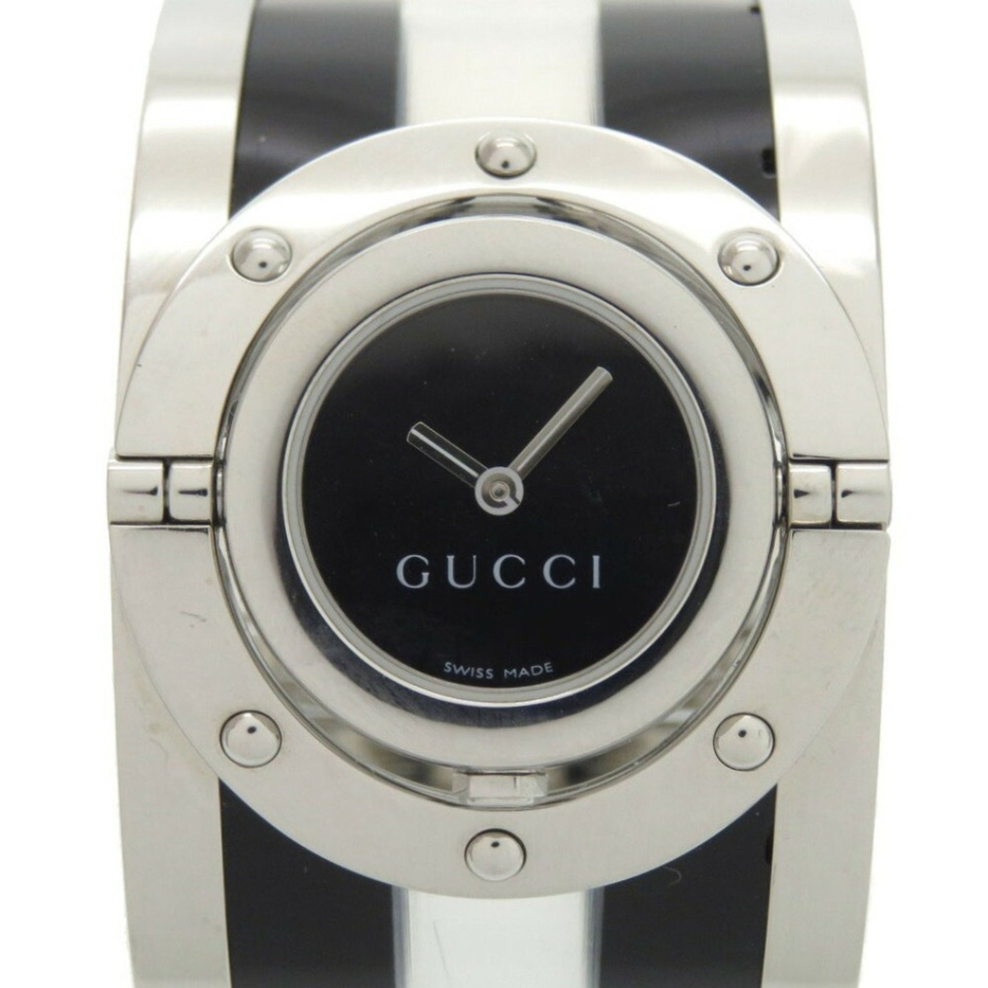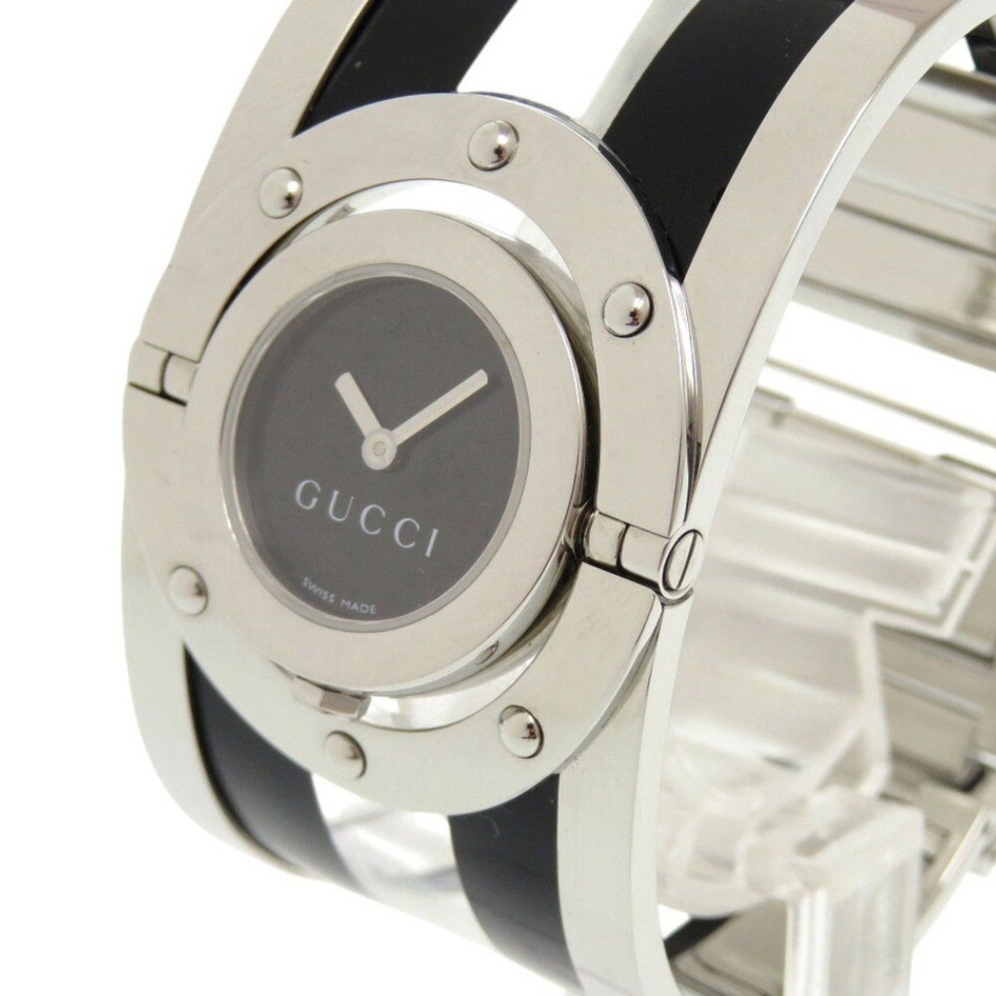 Gucci 112 Toile Bangle Stainless Steel Plastic Black Quartz Watch