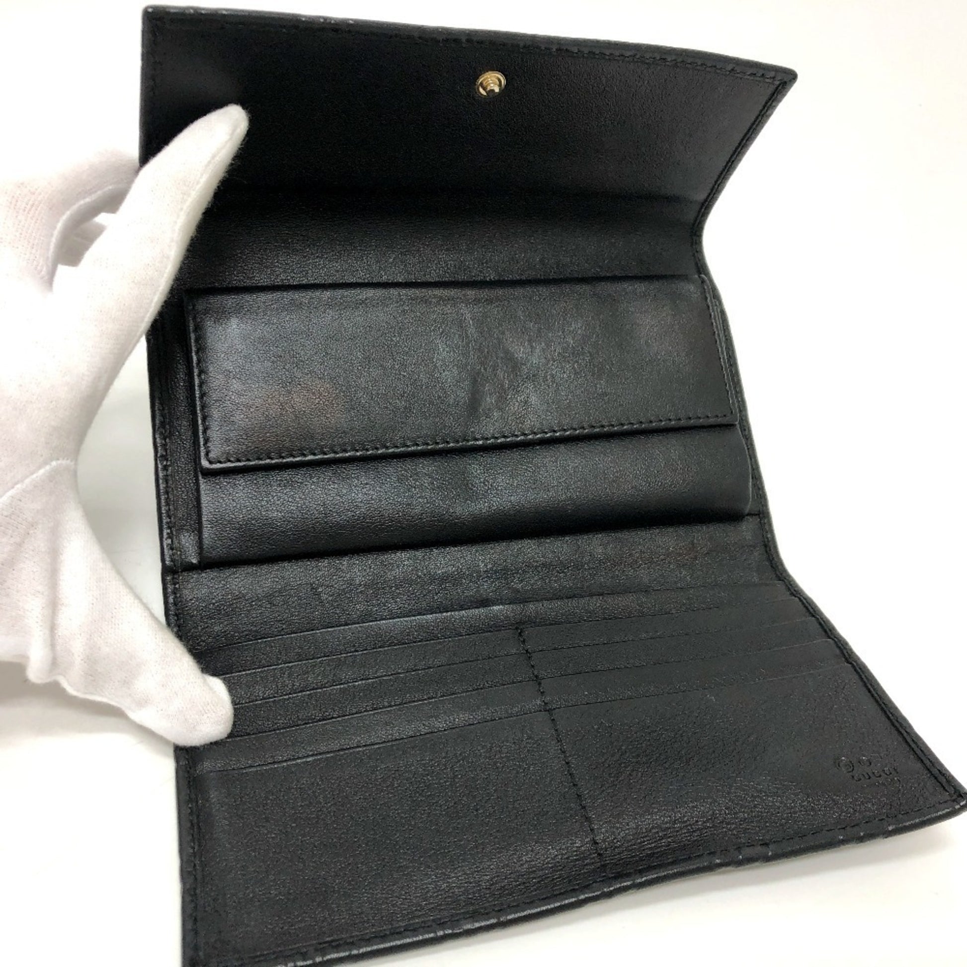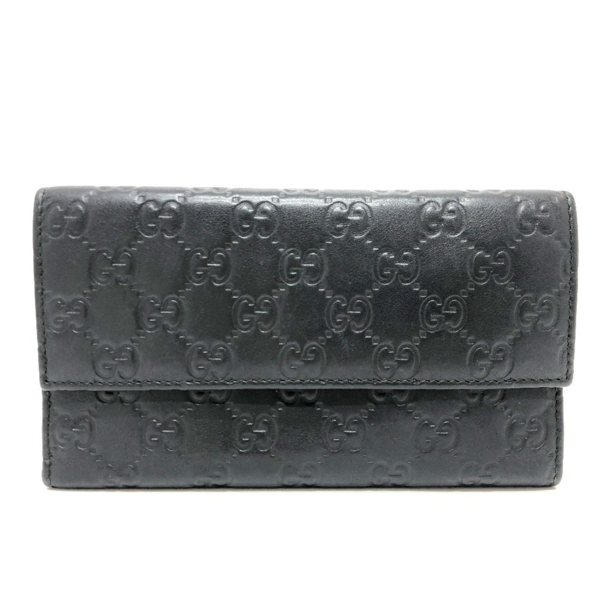 Gucci 257303 Shima Line Gg Wallet Long Embossed All-Over Pattern Tri-Fold Leather