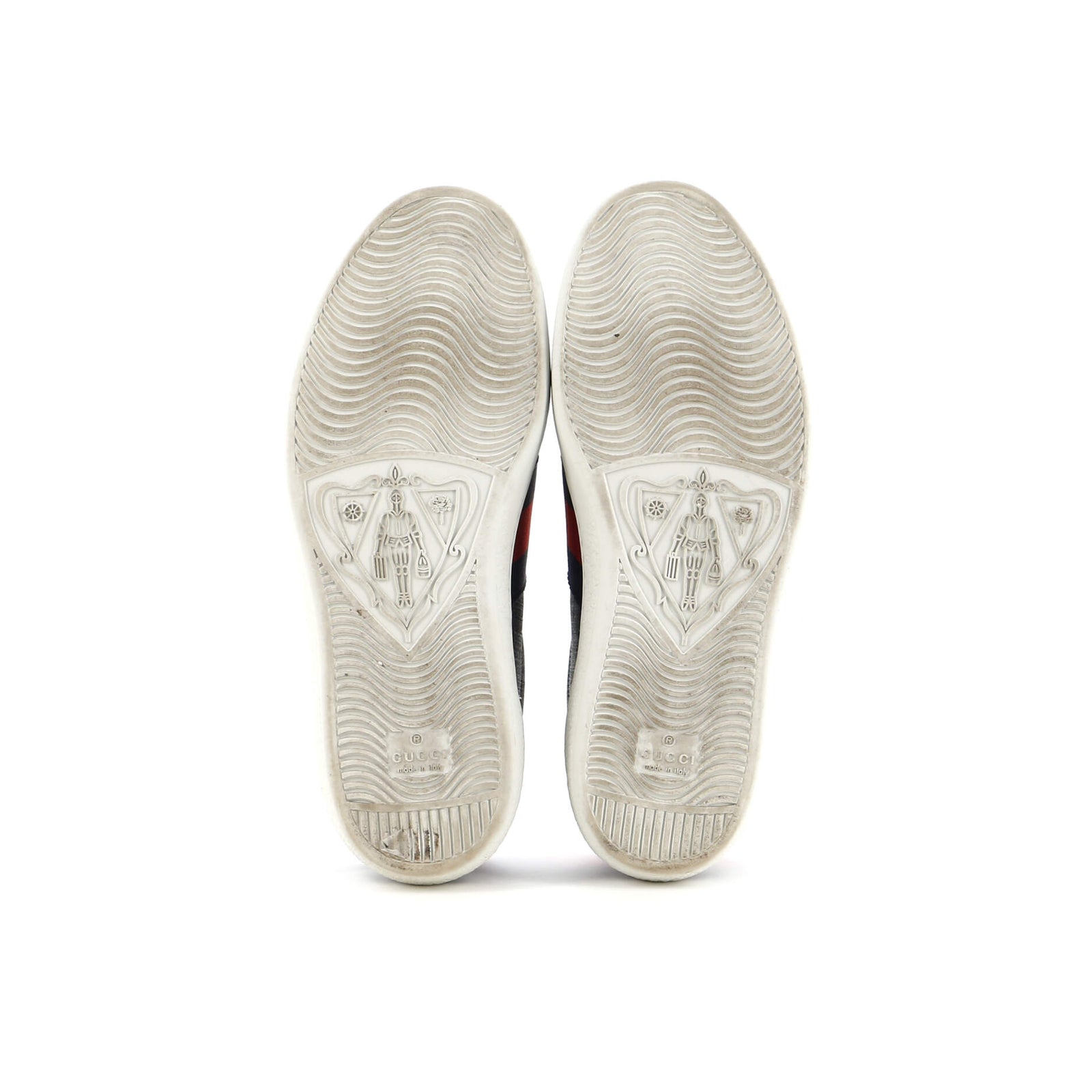 Condition: Very good. Minor creasing throughout, wear and scuffs in interior, wear, peeling, darkening, and scuffs on outer soles.