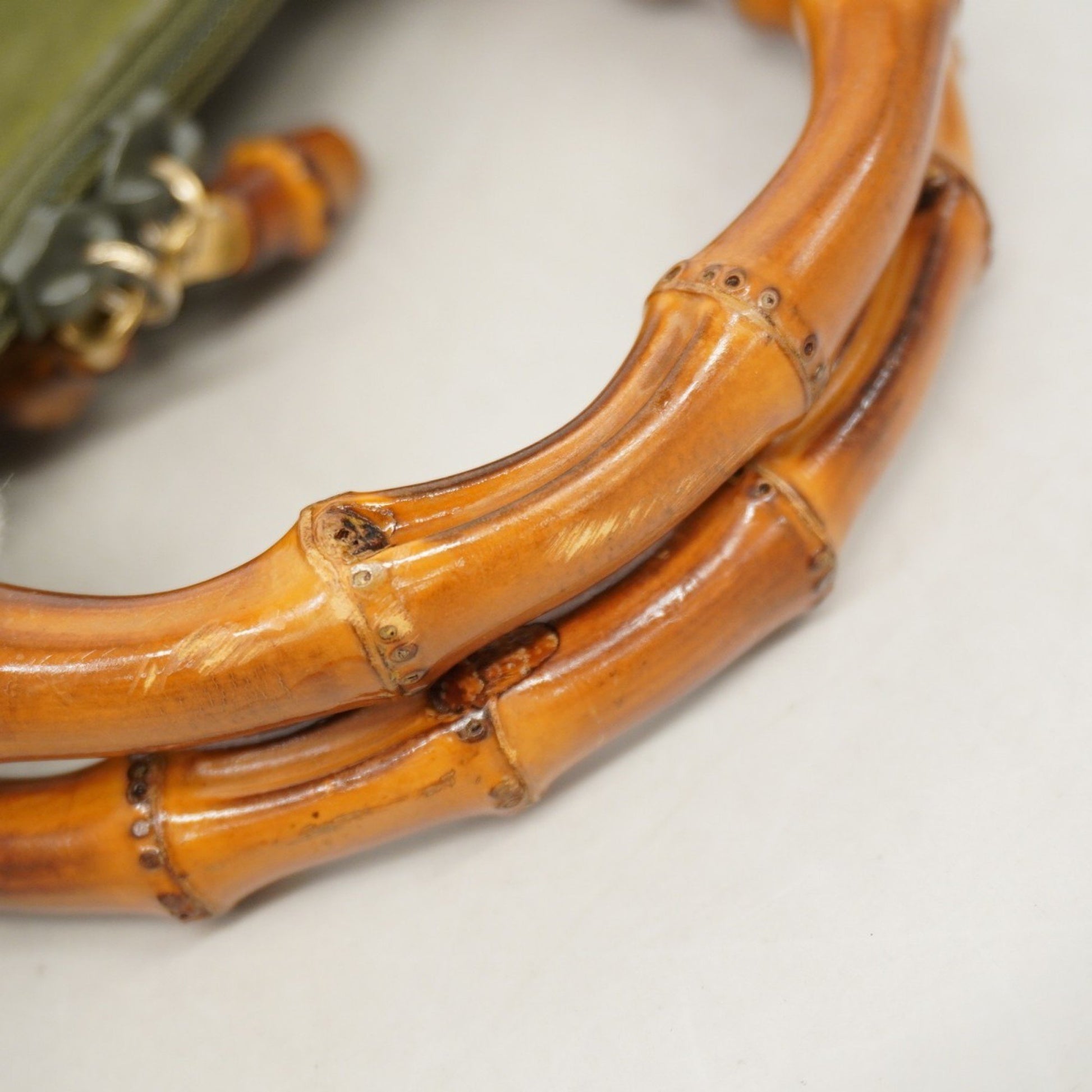 Gucci Bamboo Handbag 000 1046 0290 Suede Green Champagne 2-Way Bag