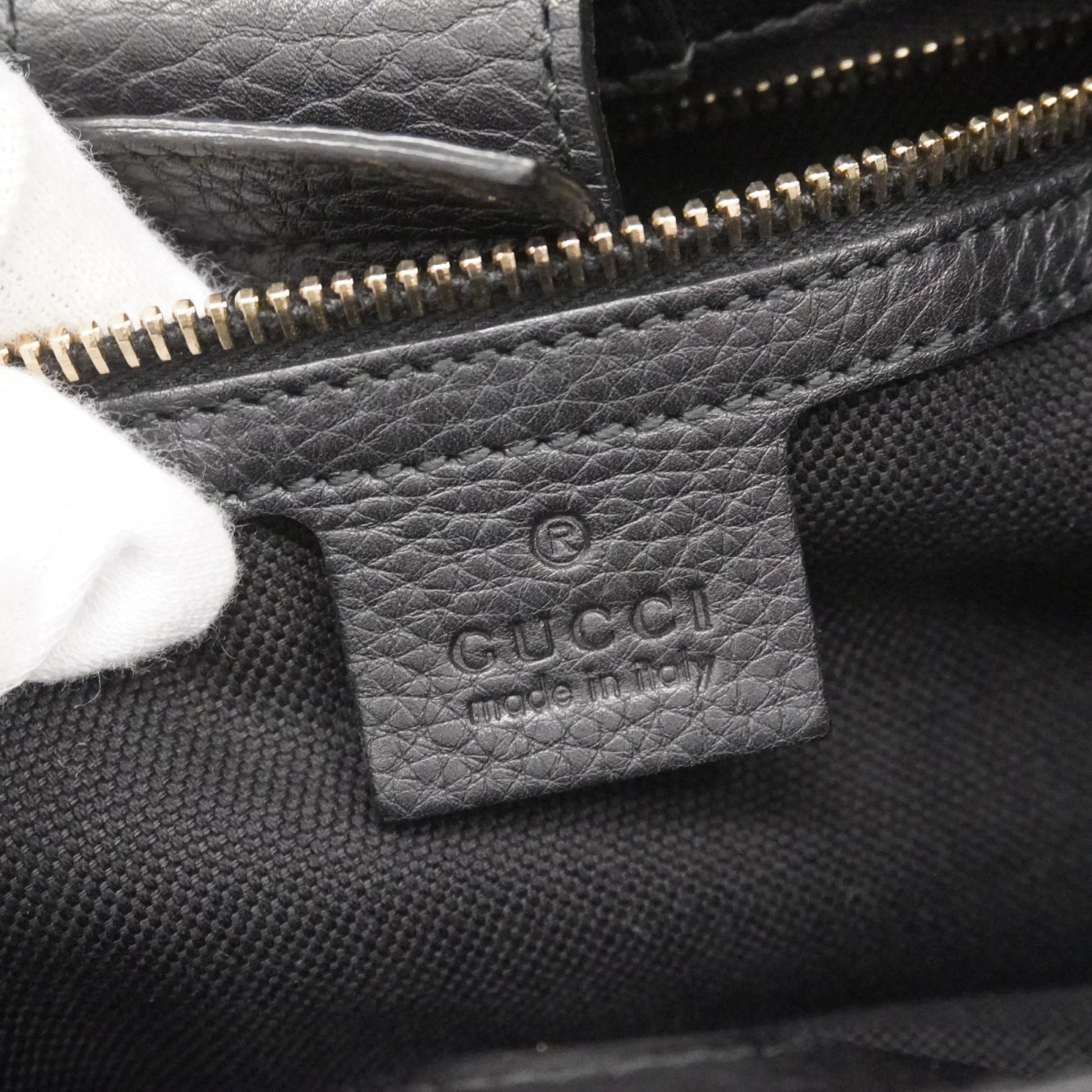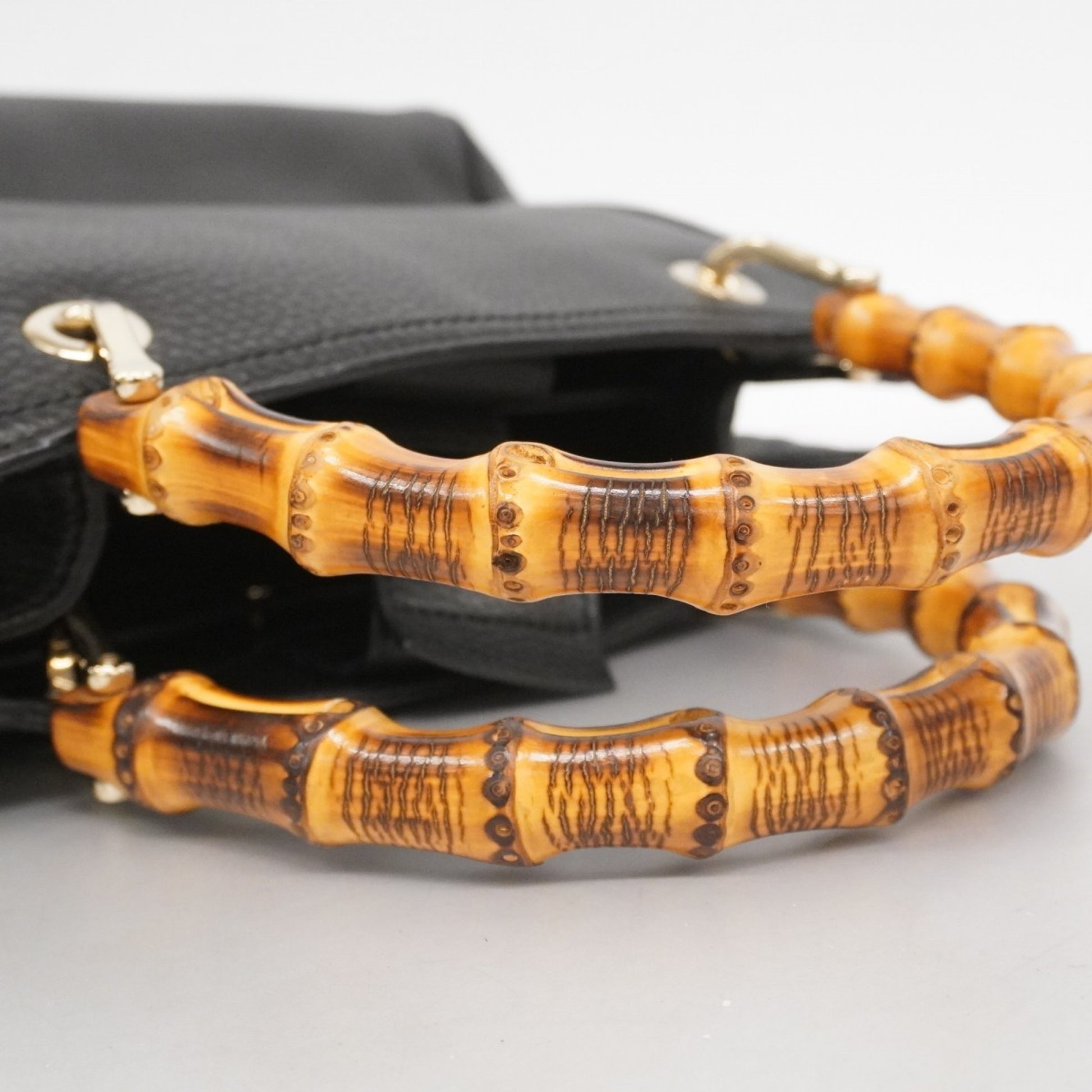 Gucci Bamboo Handbag 336032 Leather Black Champagne 2-Way Bag