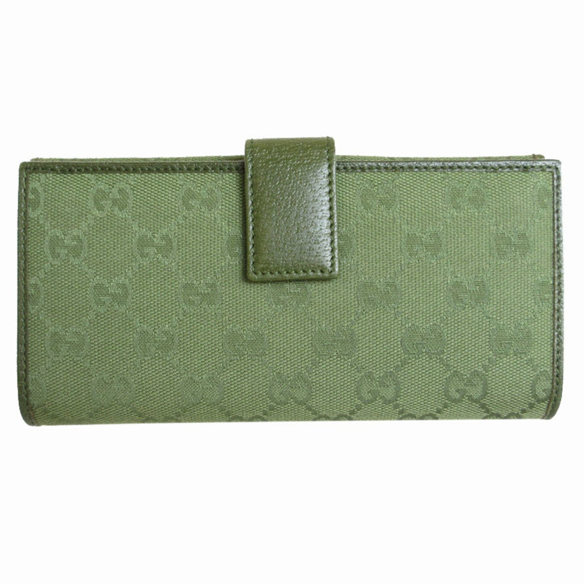 Gucci Bi-Fold Long Wallet Gg Canvas Khaki Green Silver