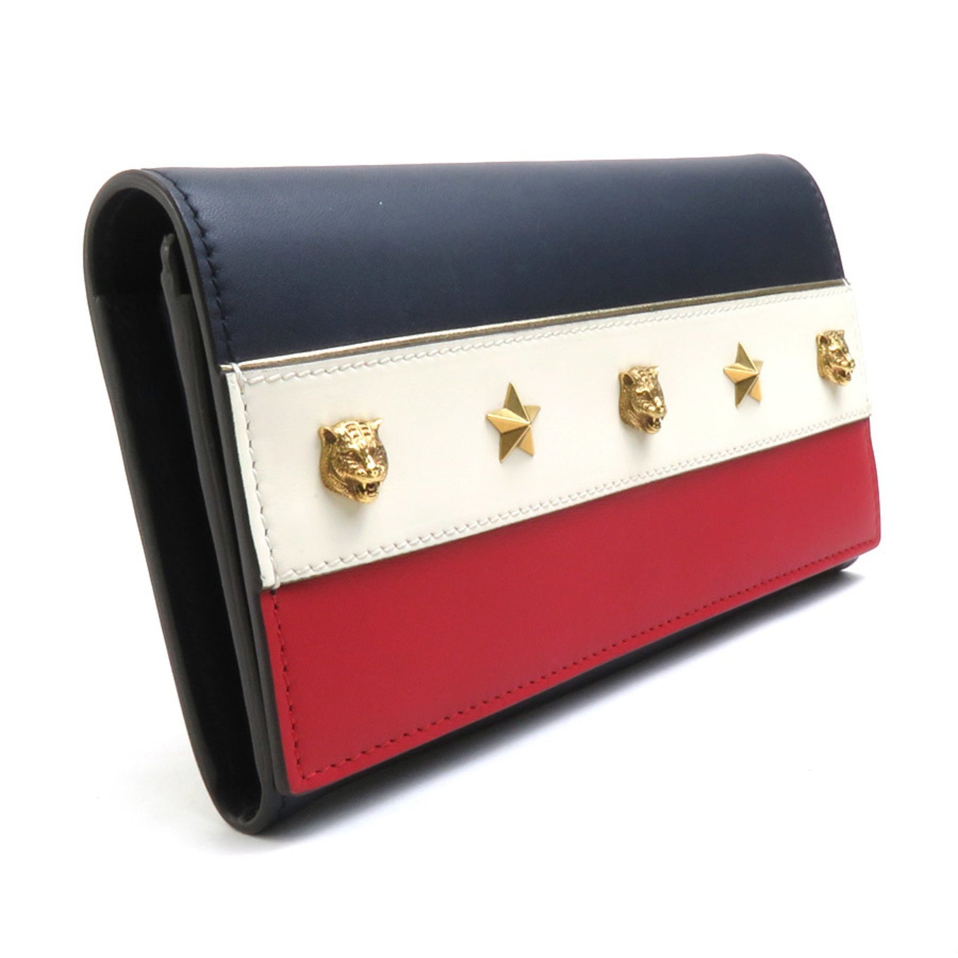 Gucci Bi-Fold Long Wallet Leather Navy/Off-White/Red Gold