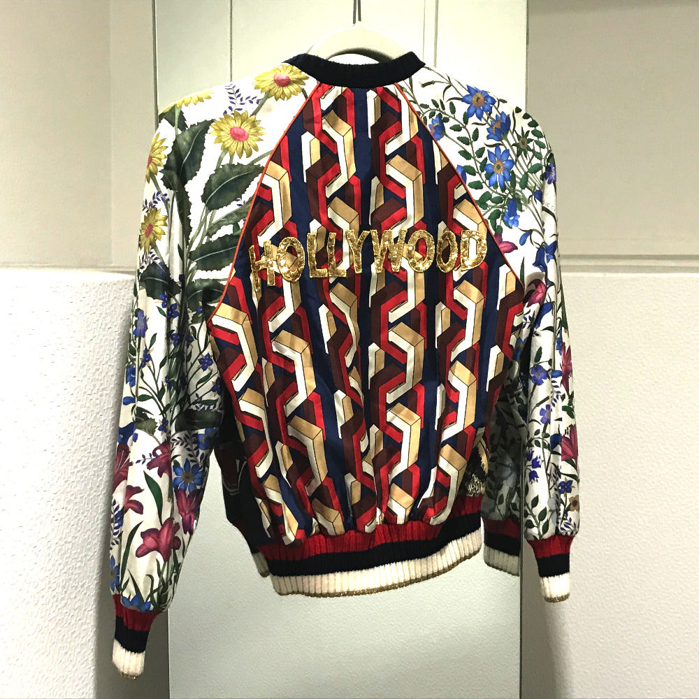 Gucci Blouson 476247 Silk, Sequins White X Multicolor Tiger Print Bomber Jacket Jacket Outerwear