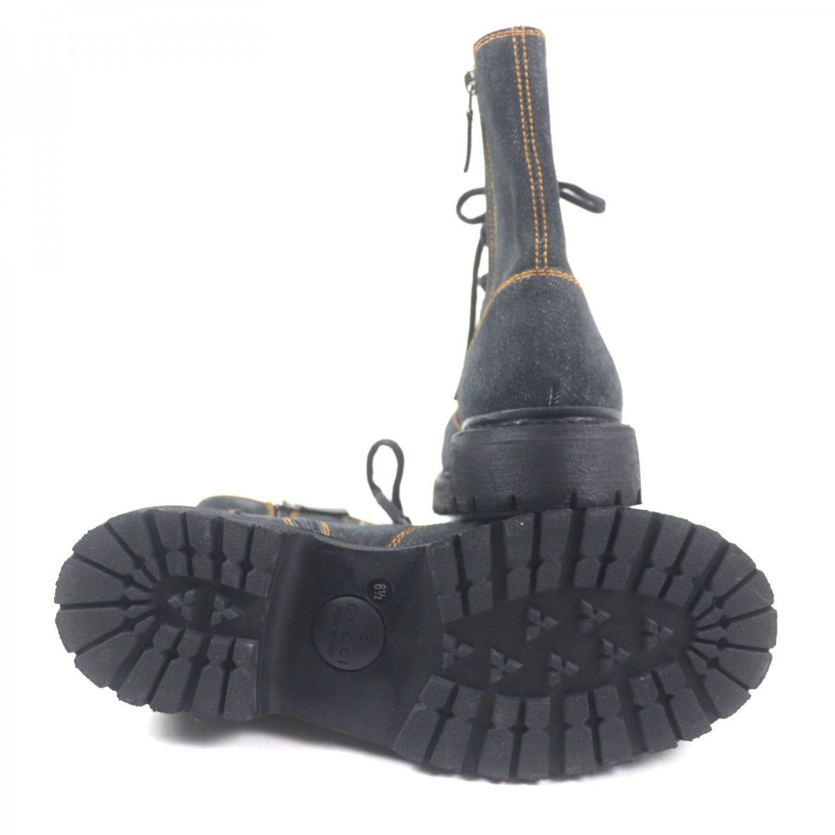 Gucci Boots 761989 Denim Indigo Shelly Line Web Line 6.5