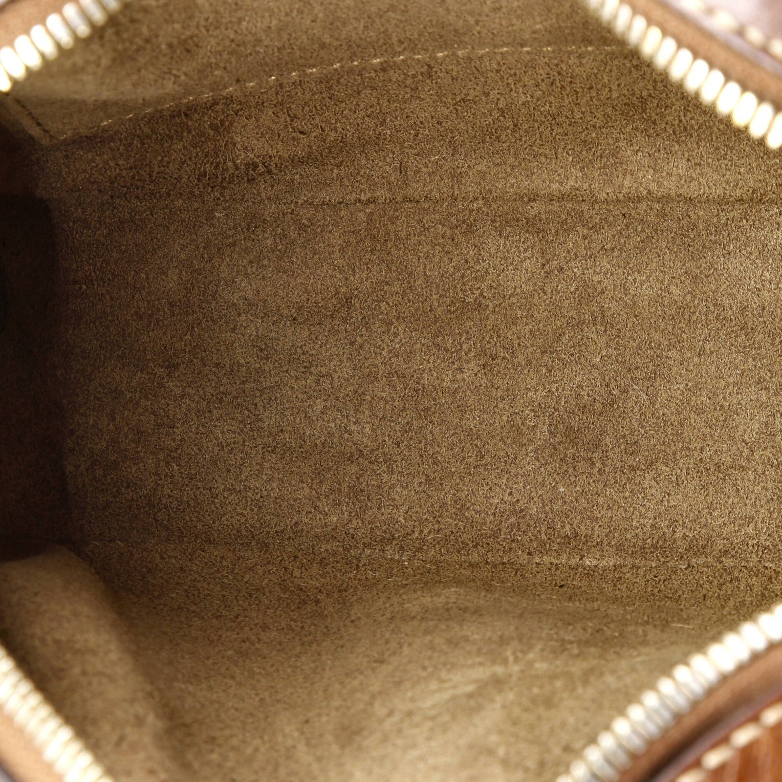 Condition: Good. Exterior: scuffs, creases, minor corner wear, minor discoloration. Handles/Straps: scuffs, creases. Interior: pilling, moderate odor. Hardware: scratches